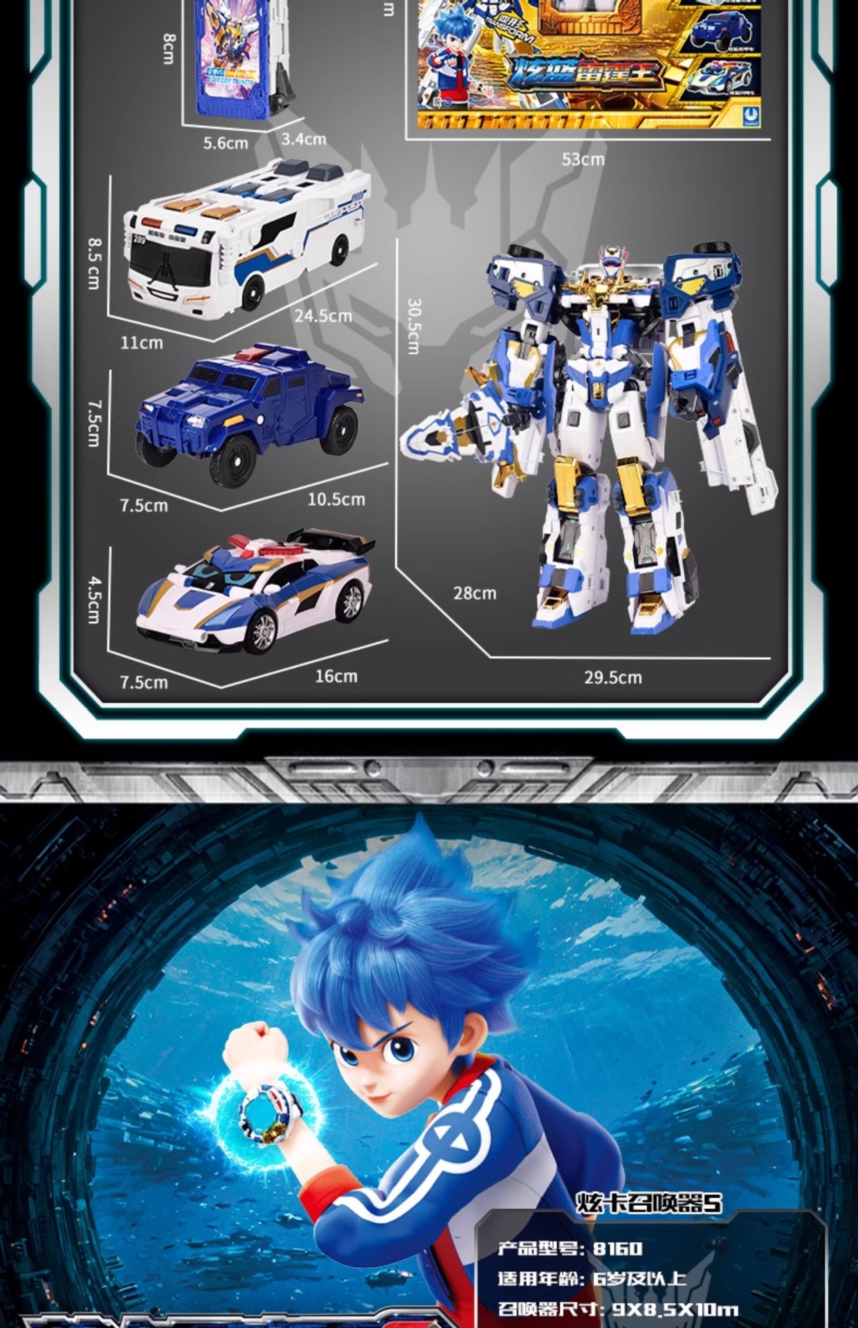 빛나는 카드 파이터 2 빛나는 블루 썬더 킹 장난감 변형 로봇 보이 킹 콩 메카 오토봇 빛나는 블루 번개 S