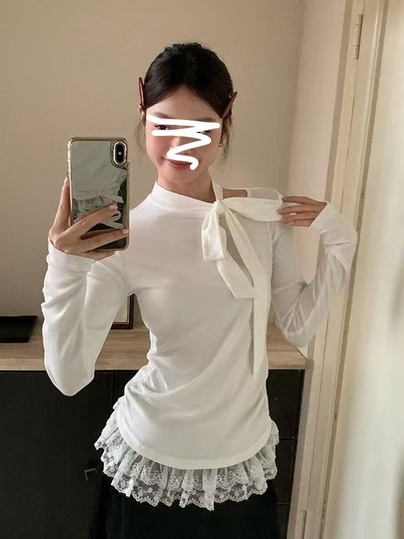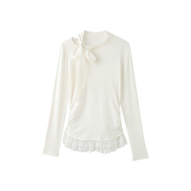 발레 스타일 레이스 바느질 활 긴팔 티셔츠베이스 셔츠 여성의 가을과 겨울 새로운 하이 엔드 핫 걸탑스토어 가기