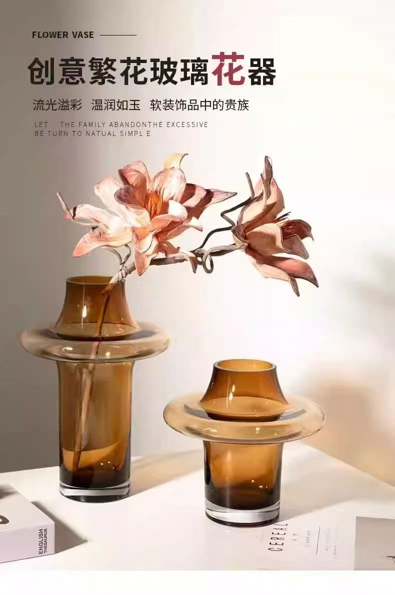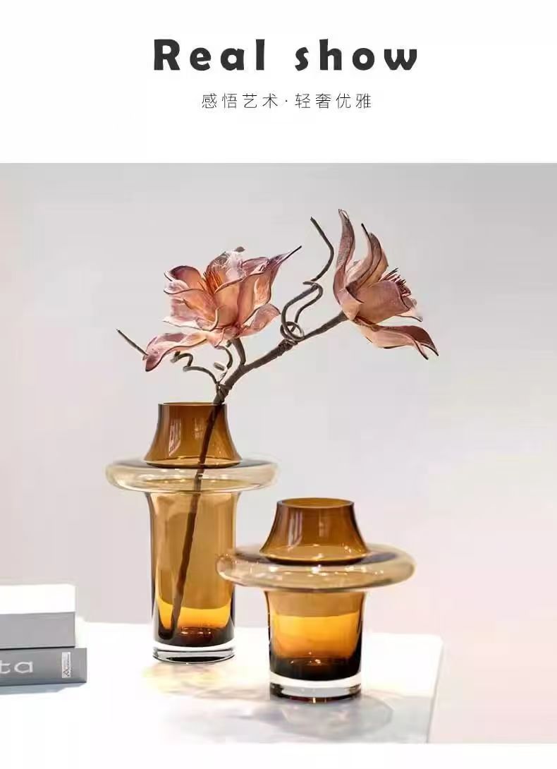 꽃 중간 고대 꽃병 고급 감각 예술 유리 꽃병 장식품 거실 물 올리기 꽃 꽃 꽃 배열