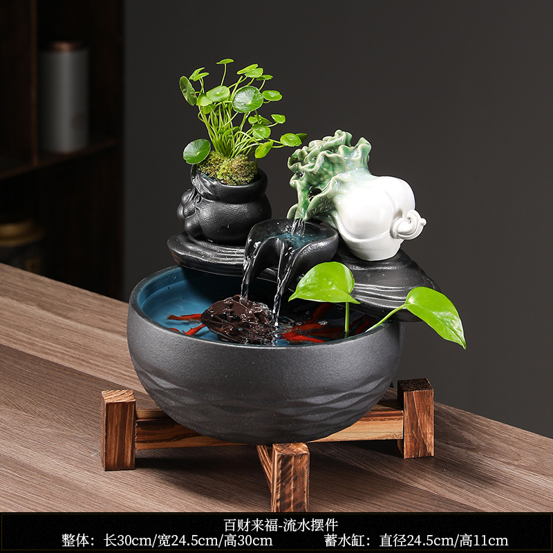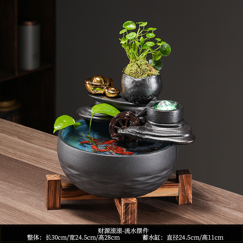 러닝 타임 풍수 볼 흐르는 물 장식품 순환 물 분수 거실 행운 티 테이블 테이블 테이블 어항 장식스토어 가기