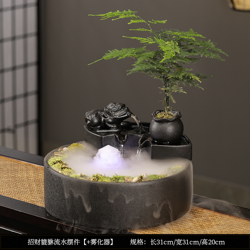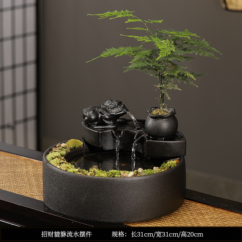 • 둥근 행운의 Pixiu + 원자화 + 무료 아스파라거스 + 이끼 + 작은 돌