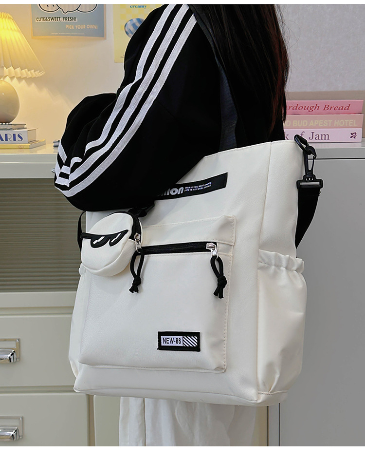 대학생 클래스 통근 대용량 토트 백 여성의 2024 새로운 유행 어깨 가방 남성 유행 크로스 바디 백스토어 가기