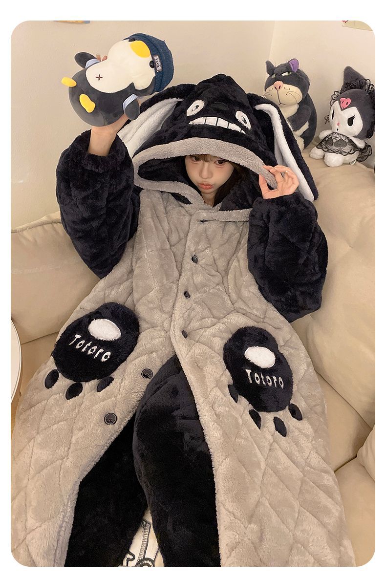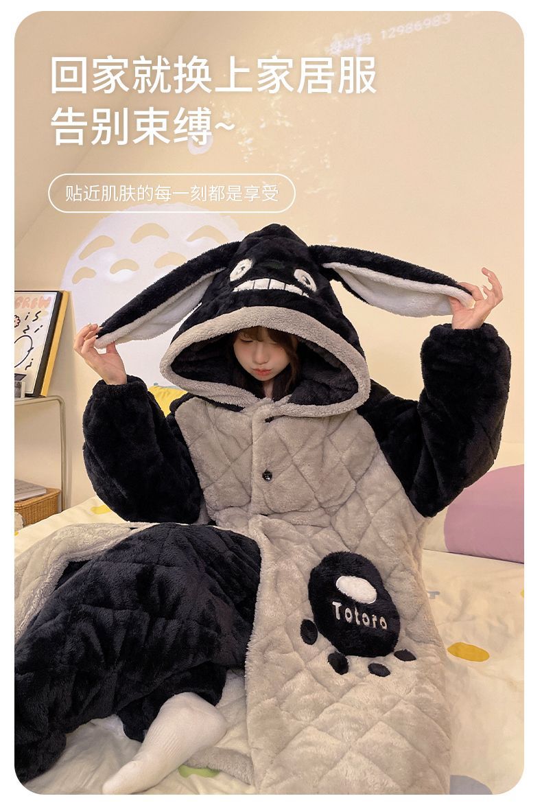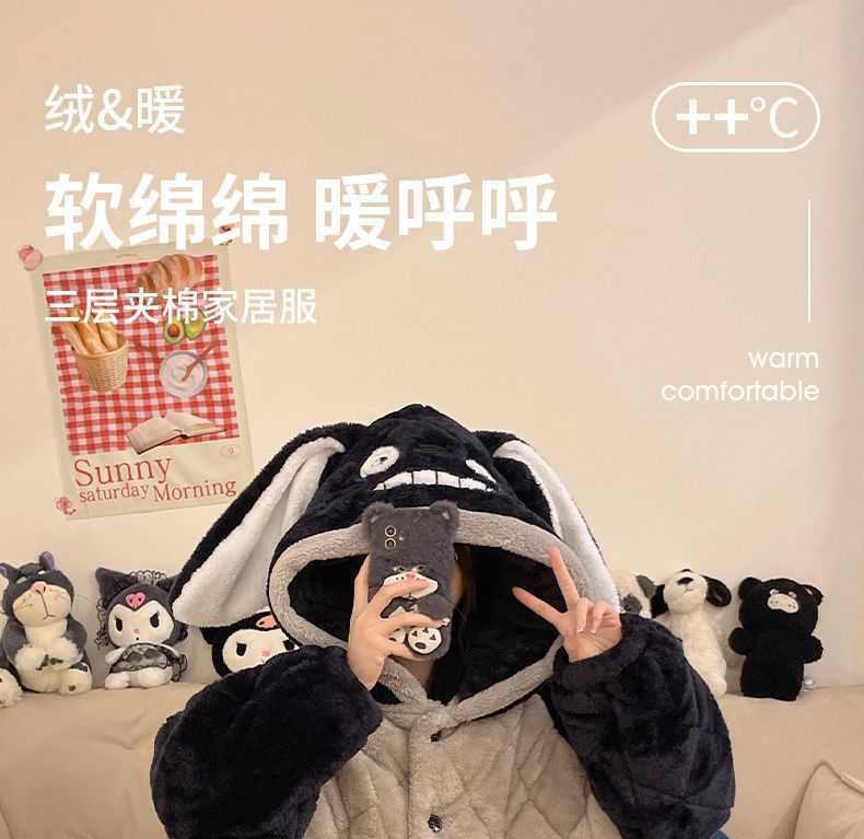 커플 잠옷, 3겹 누빔, 남녀공용, 겨울, 청소년, 큰 사이즈, 대학생 잠옷, 외출복으로도 착용 가능, 소녀풍