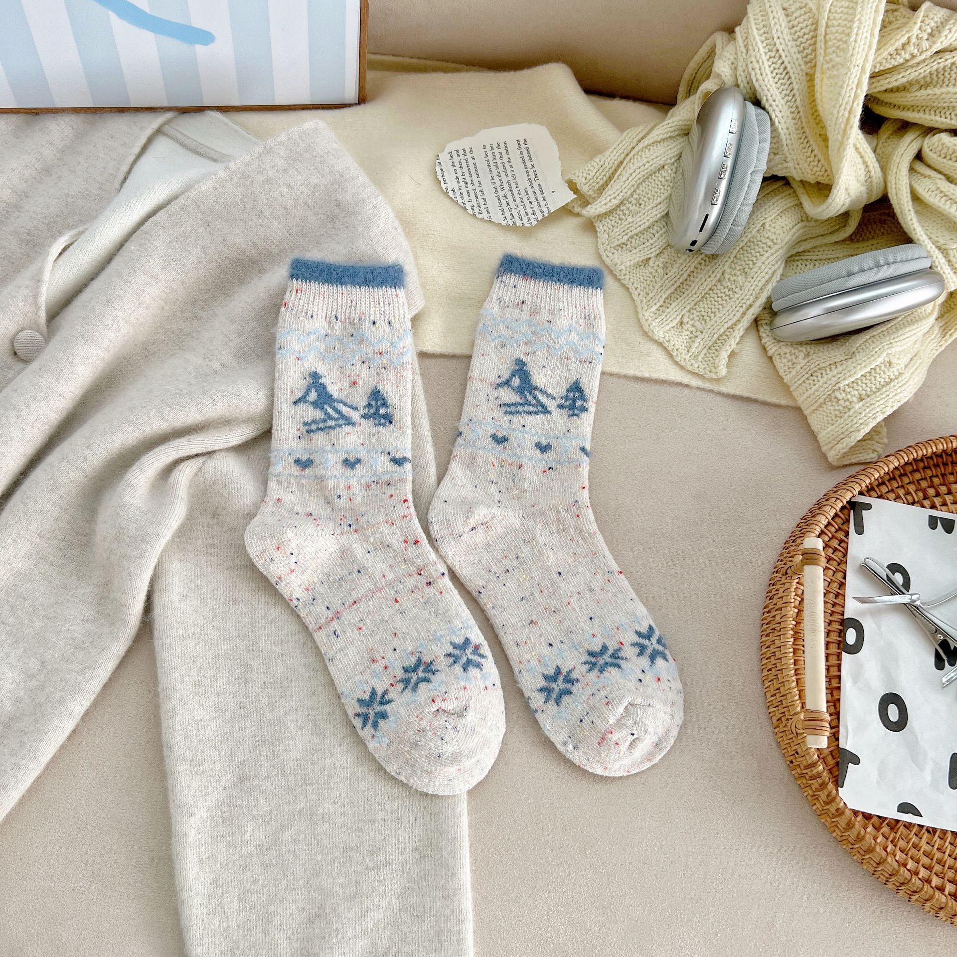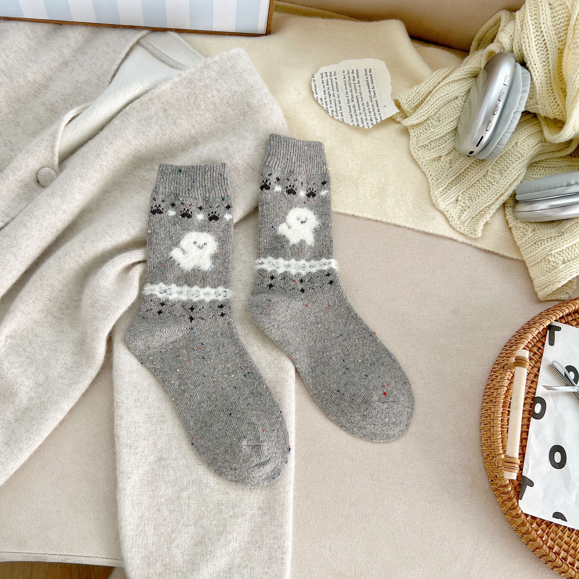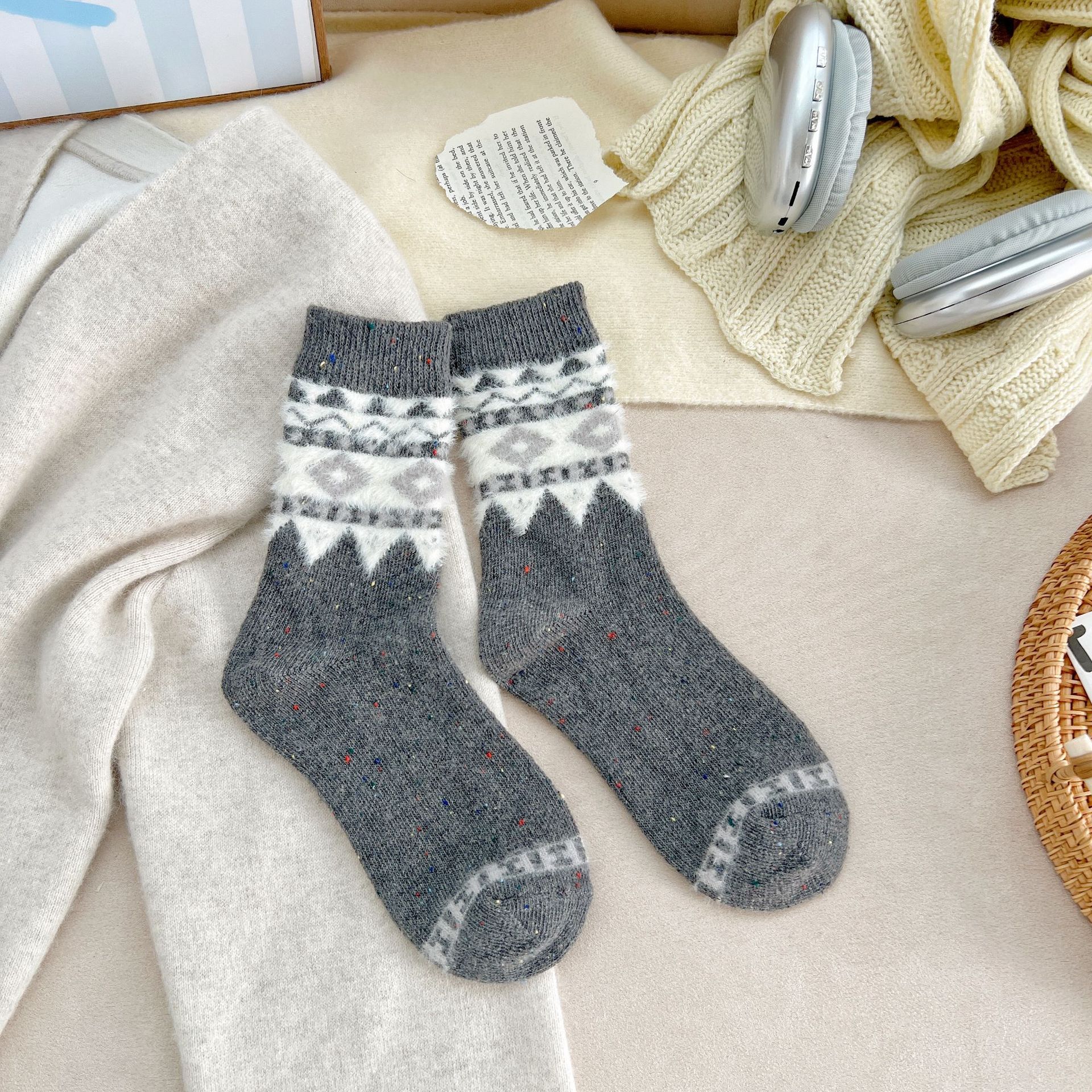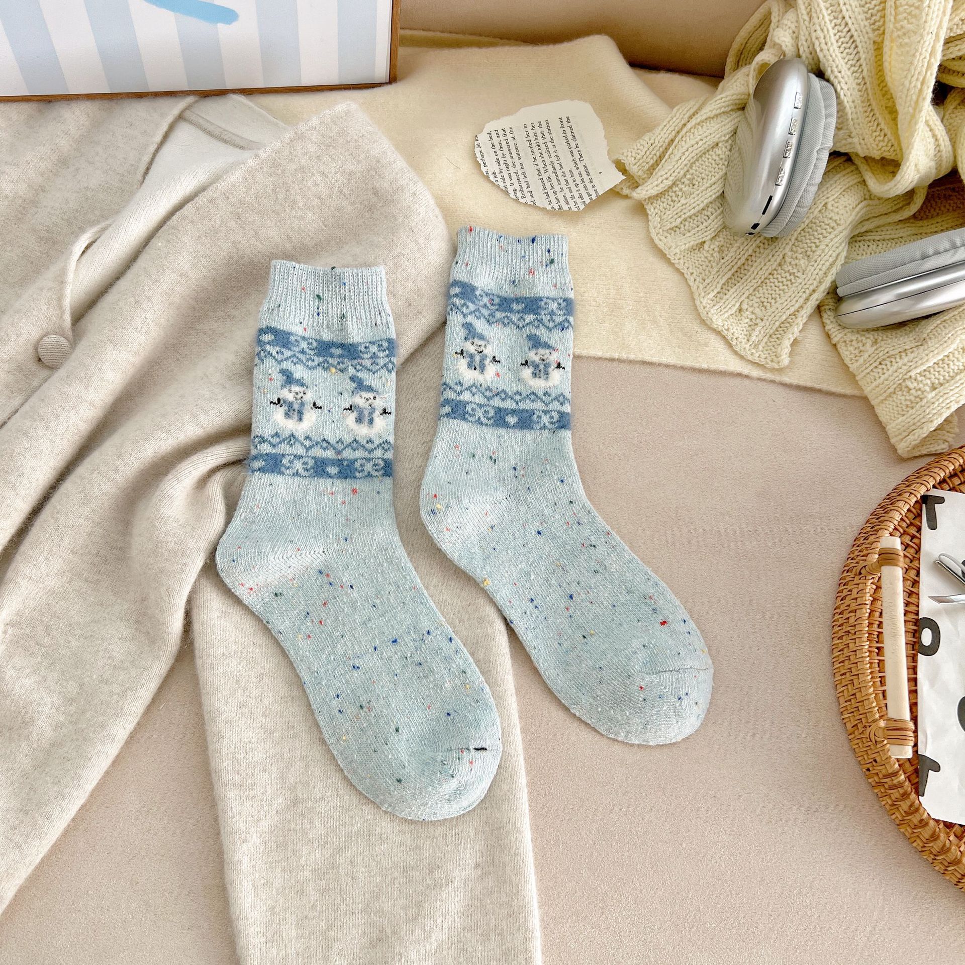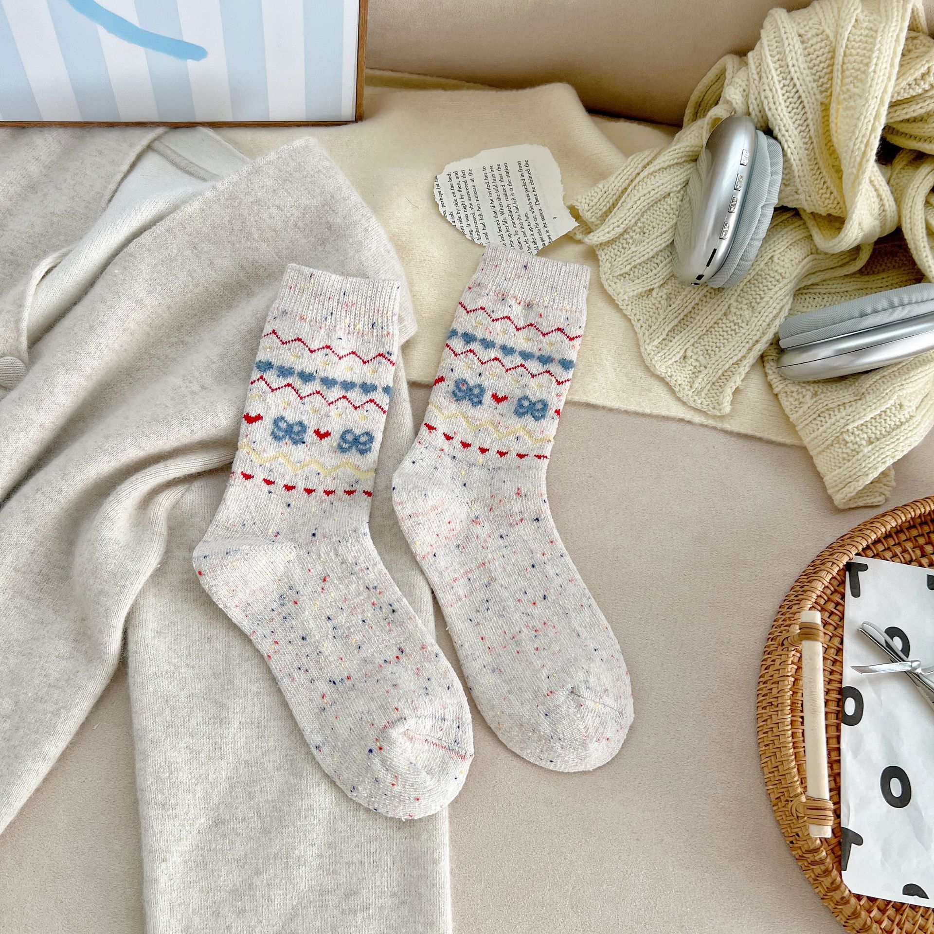 세일 섬 양말 여성 따뜻한 메리노 울 미드 튜브 양말 가을 및 겨울 빈티지 요소 일본식 및 한국식 기타 스타킹
