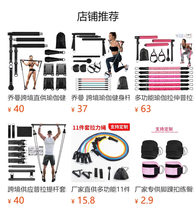 공장 직접 공급 요가 피트니스 바 180 파운드 강화 저항 밴드 조절 필라테스 바 장력 로프 세트스토어 가기