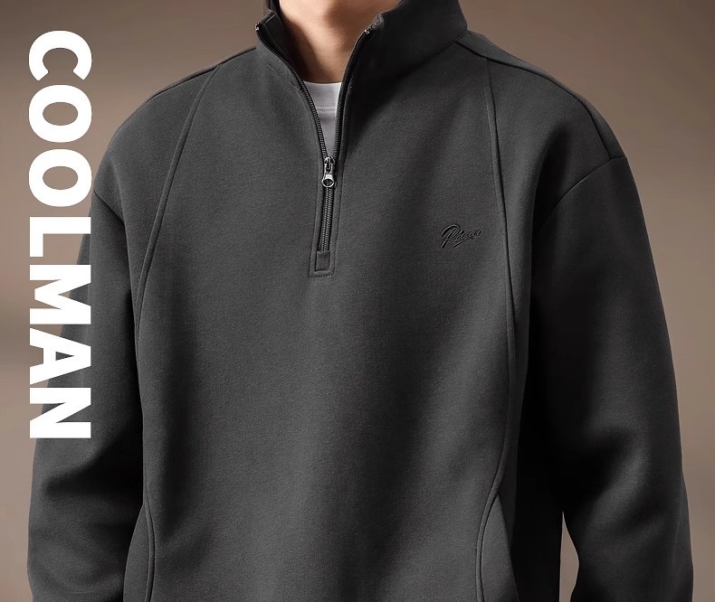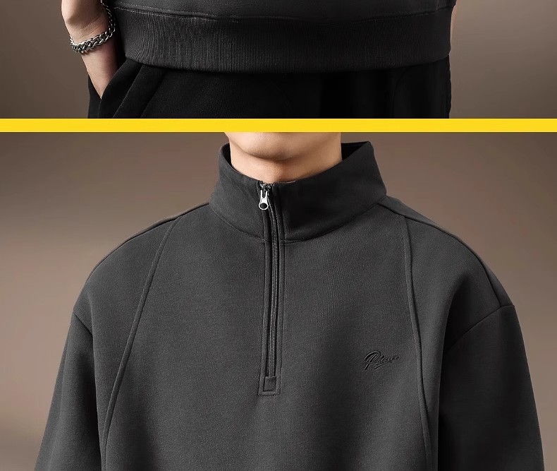 하이 엔드 아메리칸 스타일 레트로 하프 Zip 수직 칼라 자수 스웨터 남성 가을 및 겨울 느슨한 캐주얼 재킷 폴로 셔츠 남성스토어 가기