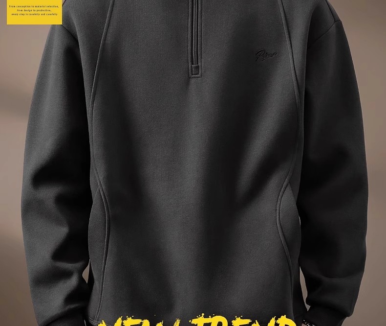 하이 엔드 아메리칸 스타일 레트로 하프 Zip 수직 칼라 자수 스웨터 남성 가을 및 겨울 느슨한 캐주얼 재킷 폴로 셔츠 남성