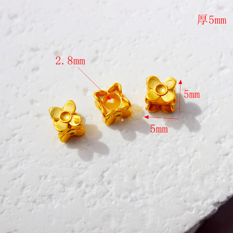 • 매트 골드 4면 꽃 관통 구멍 스페이서 비즈 5mm