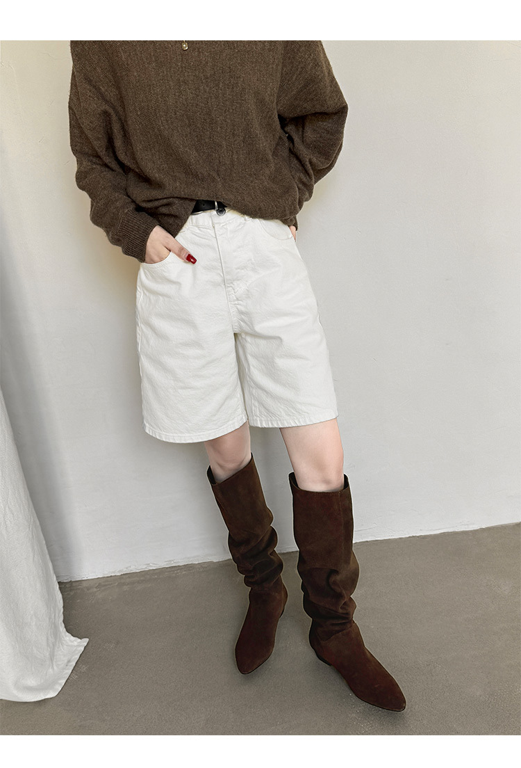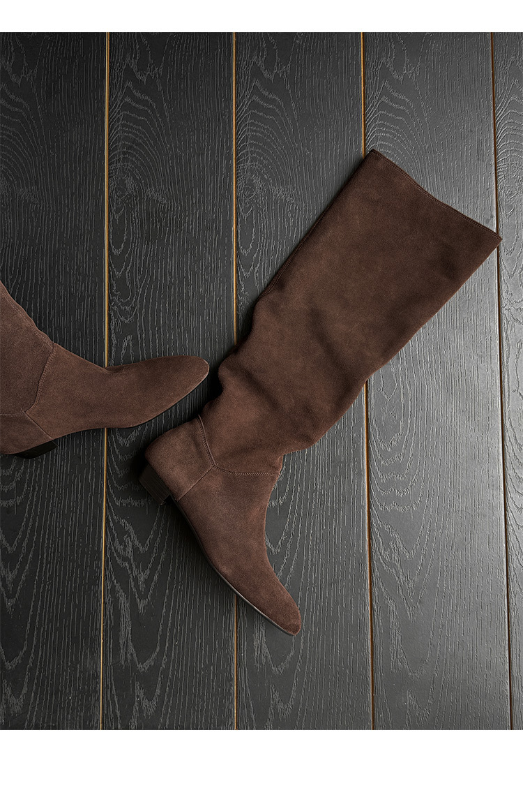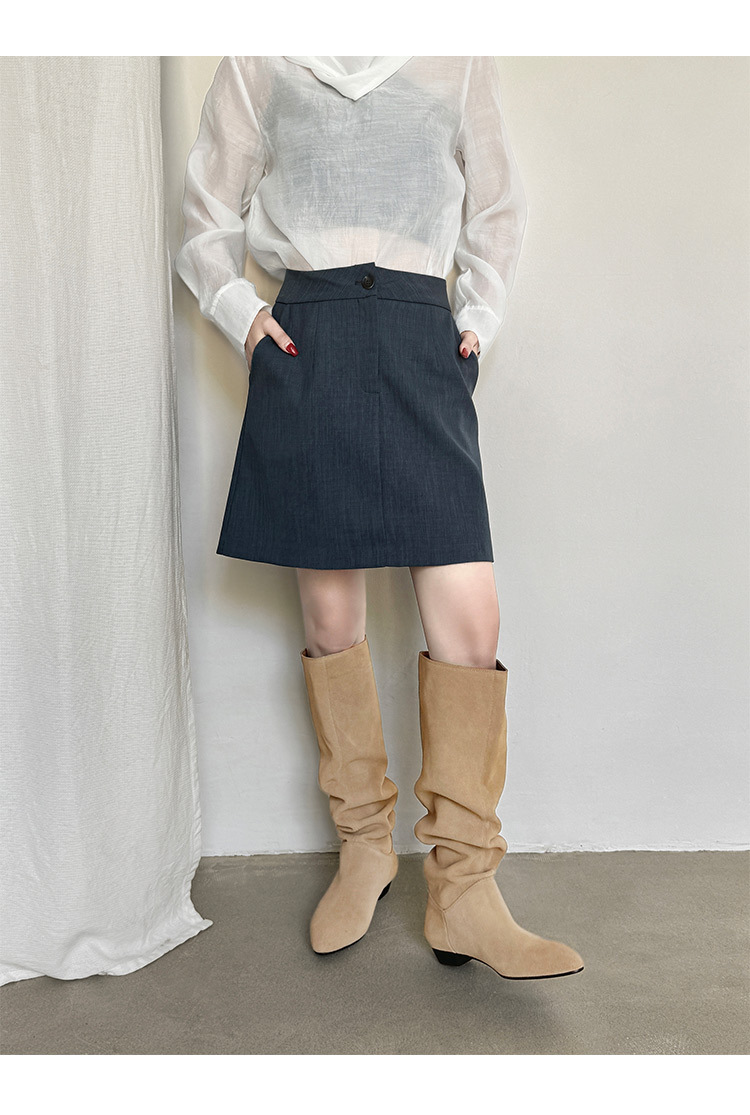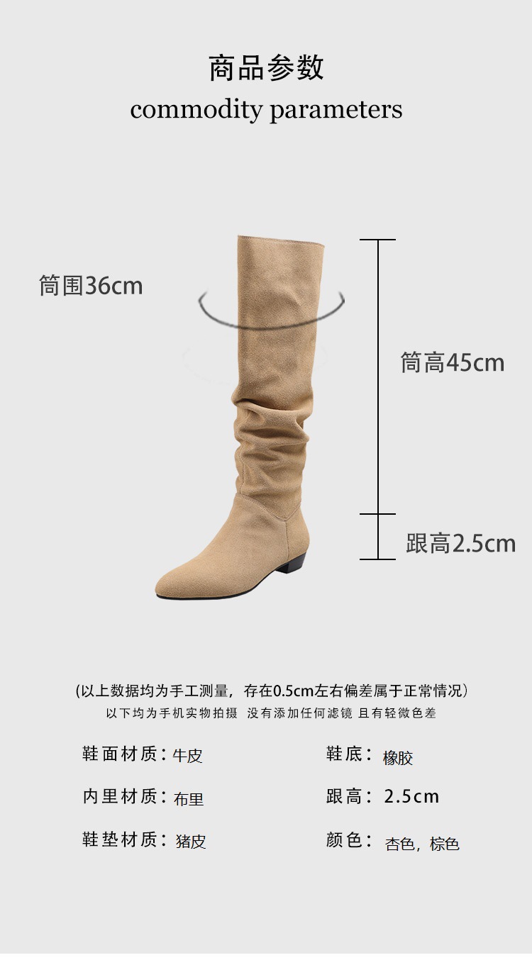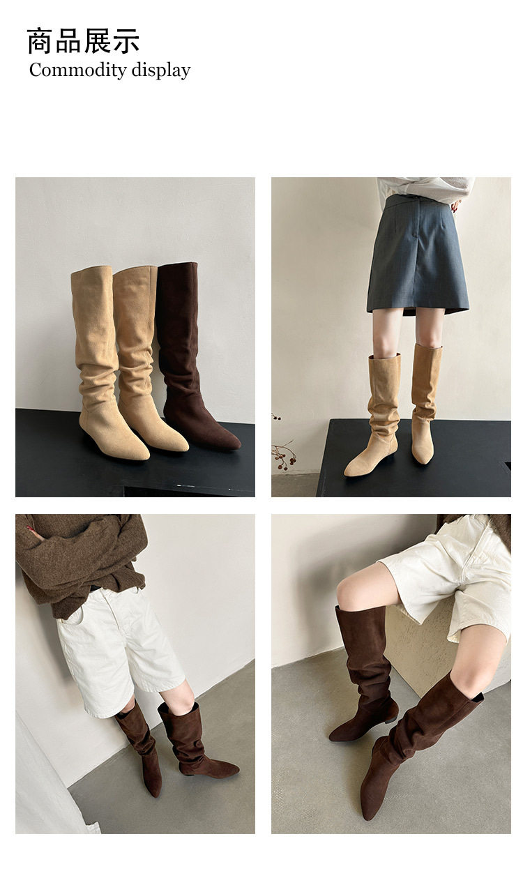 패션 트렌드 프로스트 가죽 힙 부츠 여성의 2024 가을과 겨울 새로운 포인팅 원핀 편안한 로우 힐 롱 부츠스토어 가기