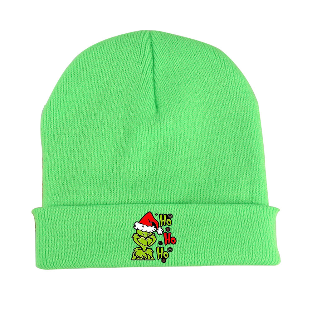 새로운 크리스마스 그린 헤어 이상한 그린 니트 모자 커플 따뜻한 솔리드 컬러 인쇄 콜드 모자 캐주얼 한국 스타일 따뜻한스토어 가기