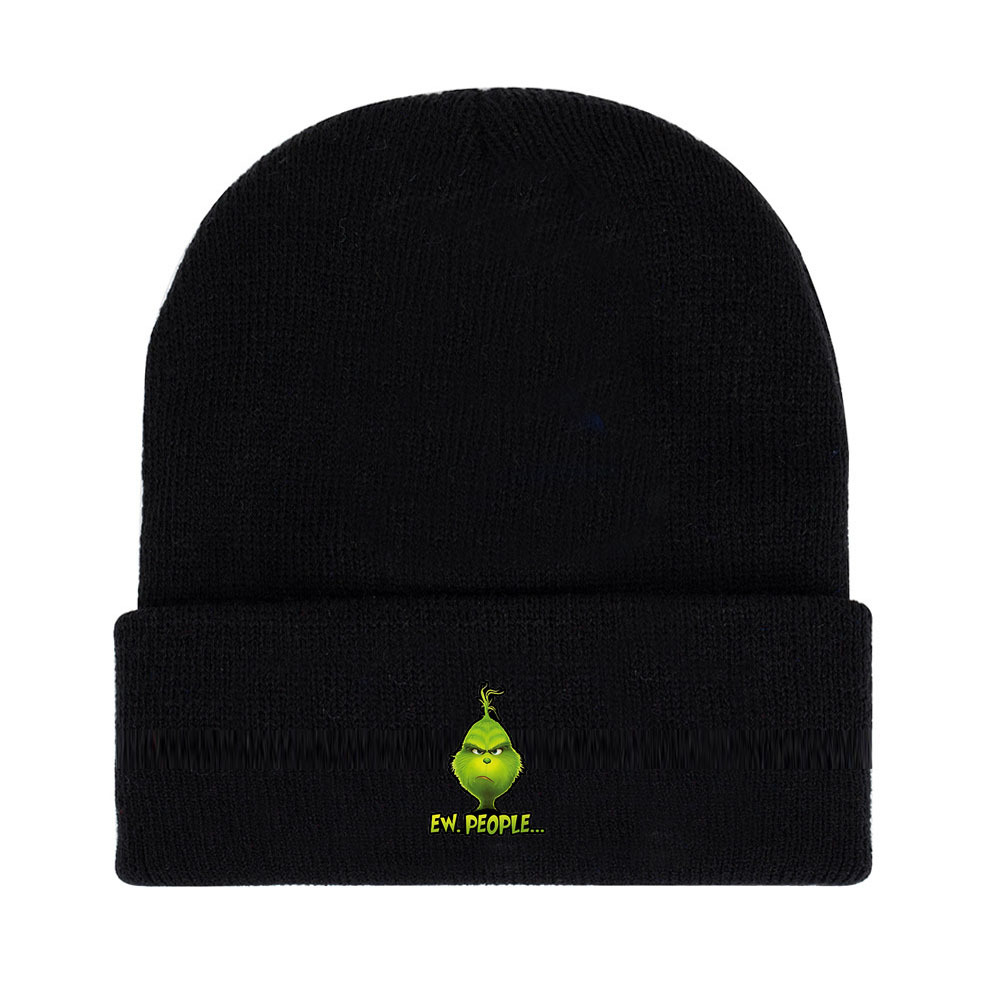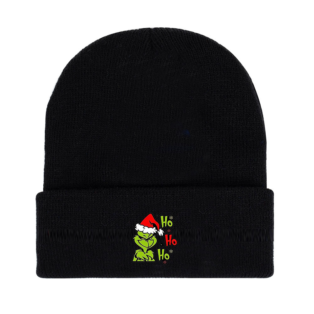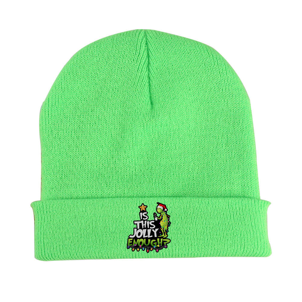 새로운 크리스마스 그린 헤어 이상한 그린 니트 모자 커플 따뜻한 솔리드 컬러 인쇄 콜드 모자 캐주얼 한국 스타일 따뜻한