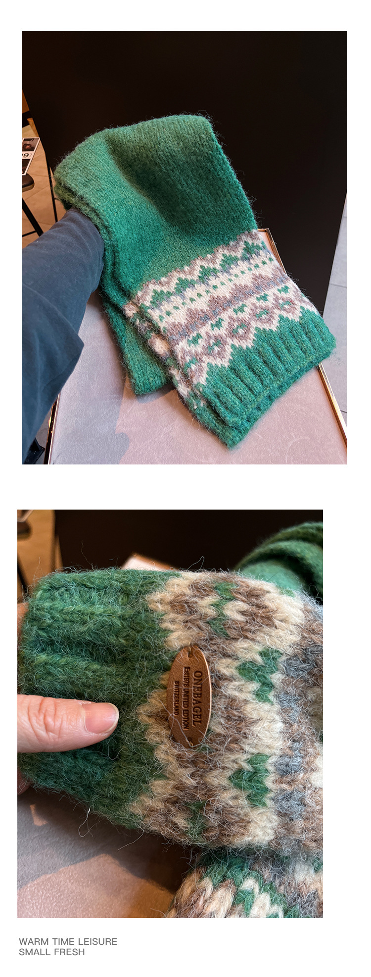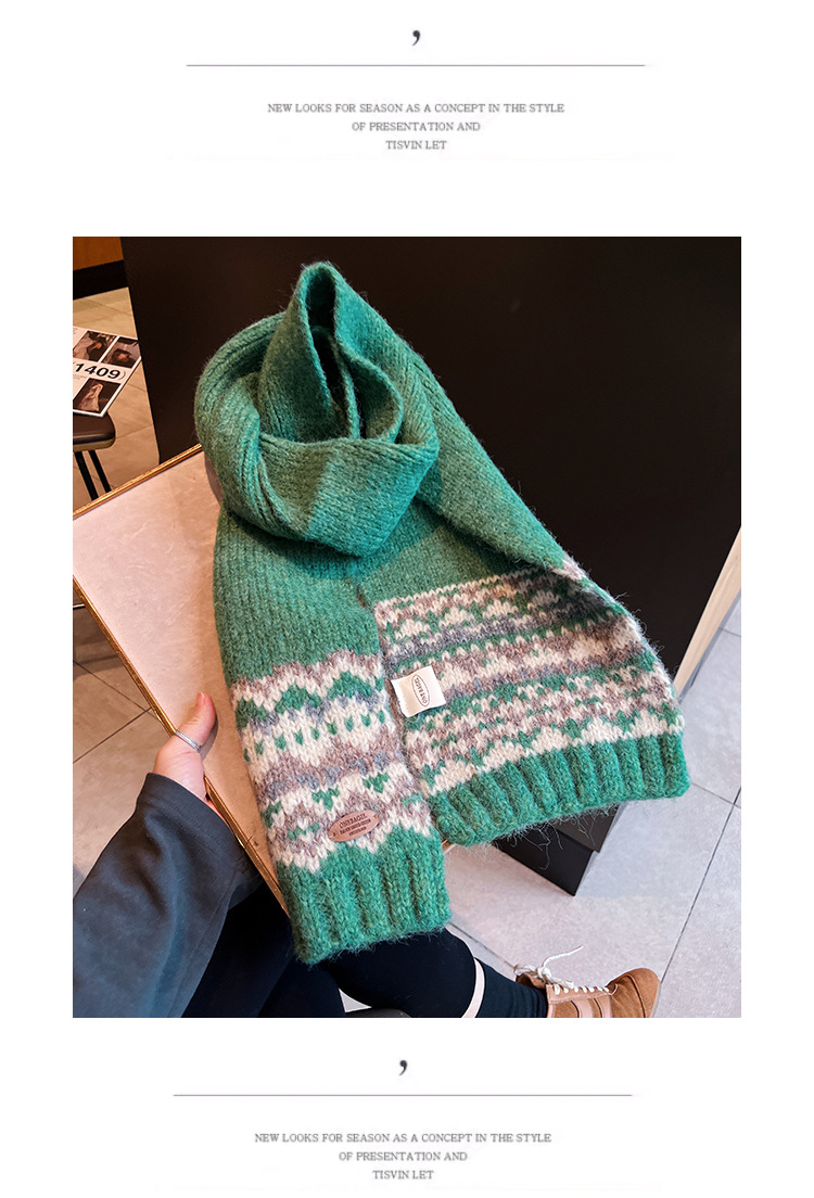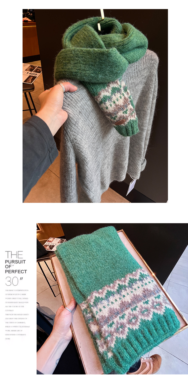 크리스마스 그린 스카프 여자 겨울 한국식 올매치 패셔너블 작은 목도리 좁은 니트 양모 따뜻한 목스토어 가기