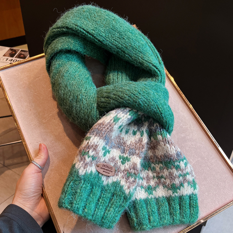 크리스마스 그린 스카프 여자 겨울 한국식 올매치 패셔너블 작은 목도리 좁은 니트 양모 따뜻한 목