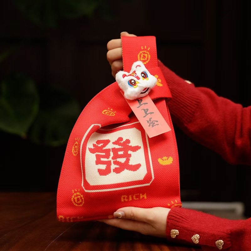 2025 년 새해 포춘 축제 니트 핸드백 대용량 통근 Guofeng 동반 선물 회사 연례 회의 핸드백스토어 가기