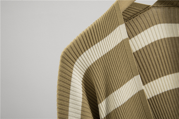 여성용 가을 루즈핏 중간 길이 스트라이프 스웨터 스커트 니트 투피스 세트 (크로스보더 캐주얼 무역)스토어 가기