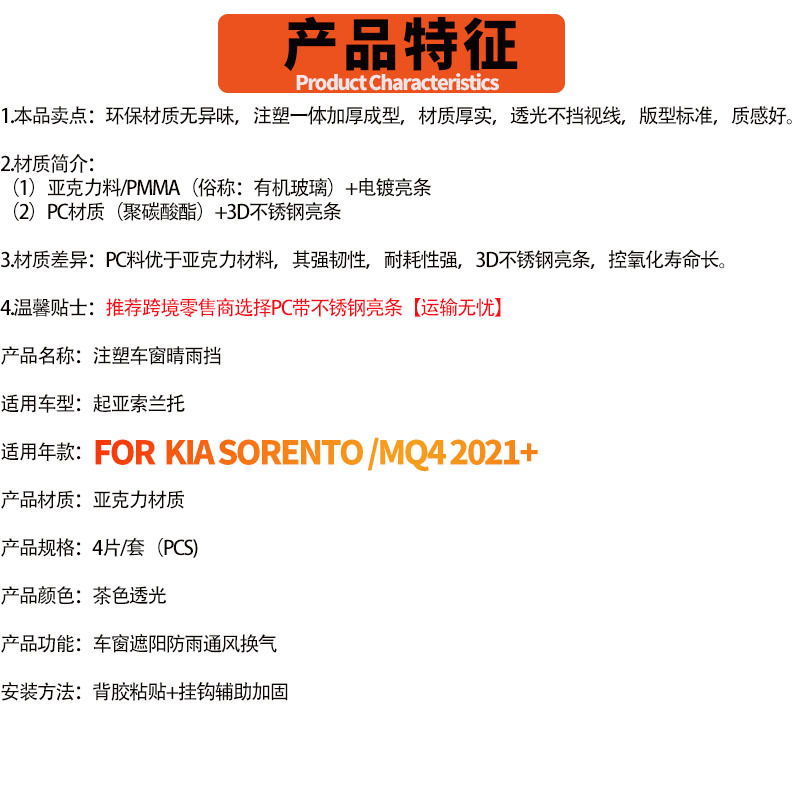 • 기아 쏘렌토 윈도우 레인 앤 레인 프로텍션 비 눈썹 KIA SORENTO 2021+ 윈도우 바이저 4개