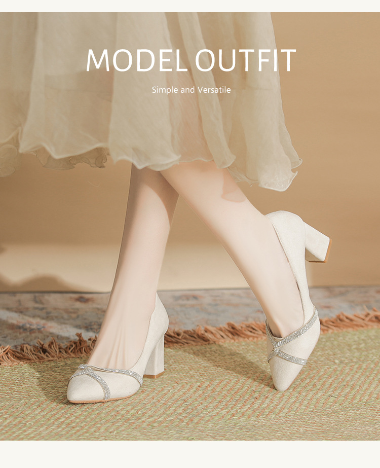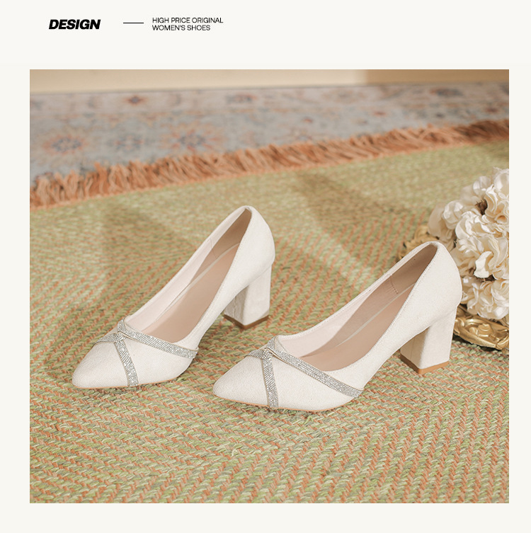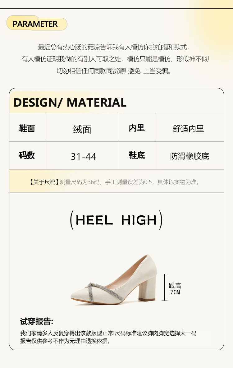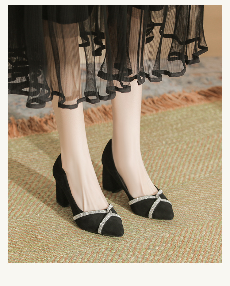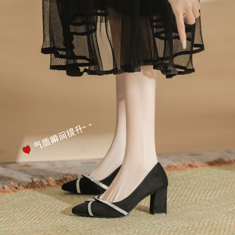 하이힐 여자 2025 뉴 스퀘어 헤드 두꺼운 힐을 플러스 사이즈 여성 싱글 슈즈를 살짝 넓힌 통근 작업 슈즈 라인스톤 올매치스토어 가기