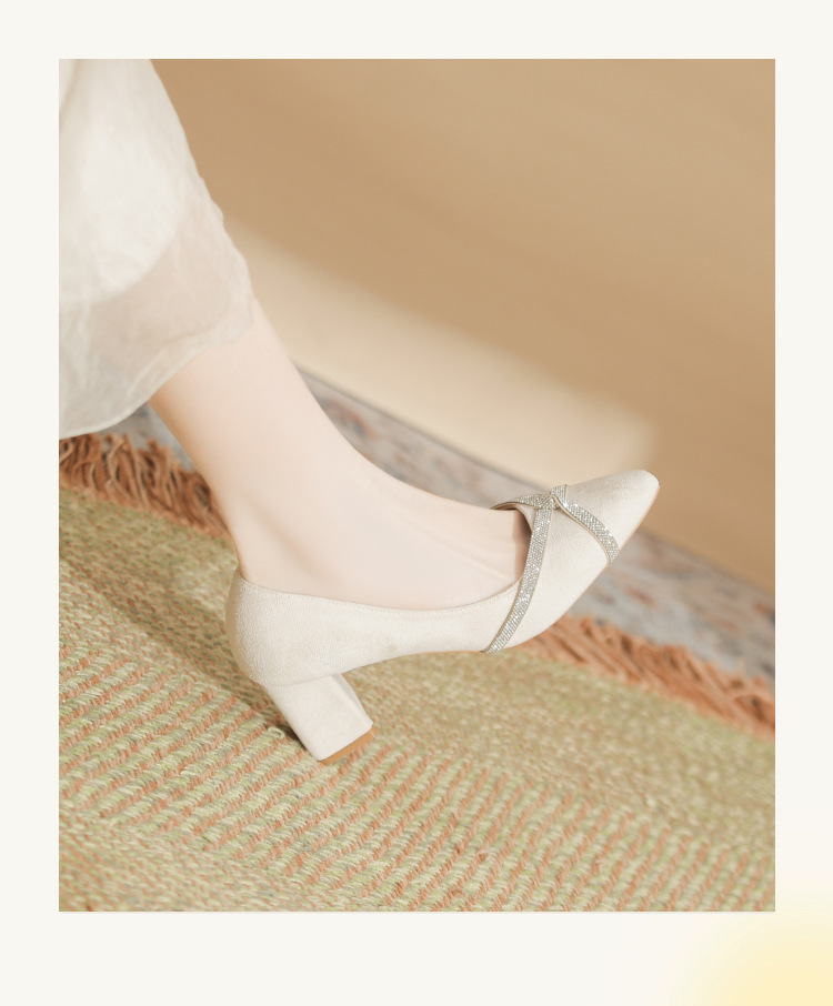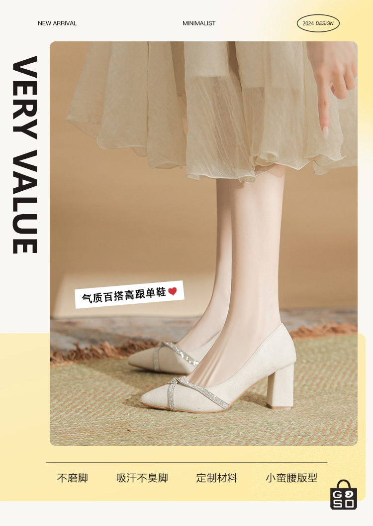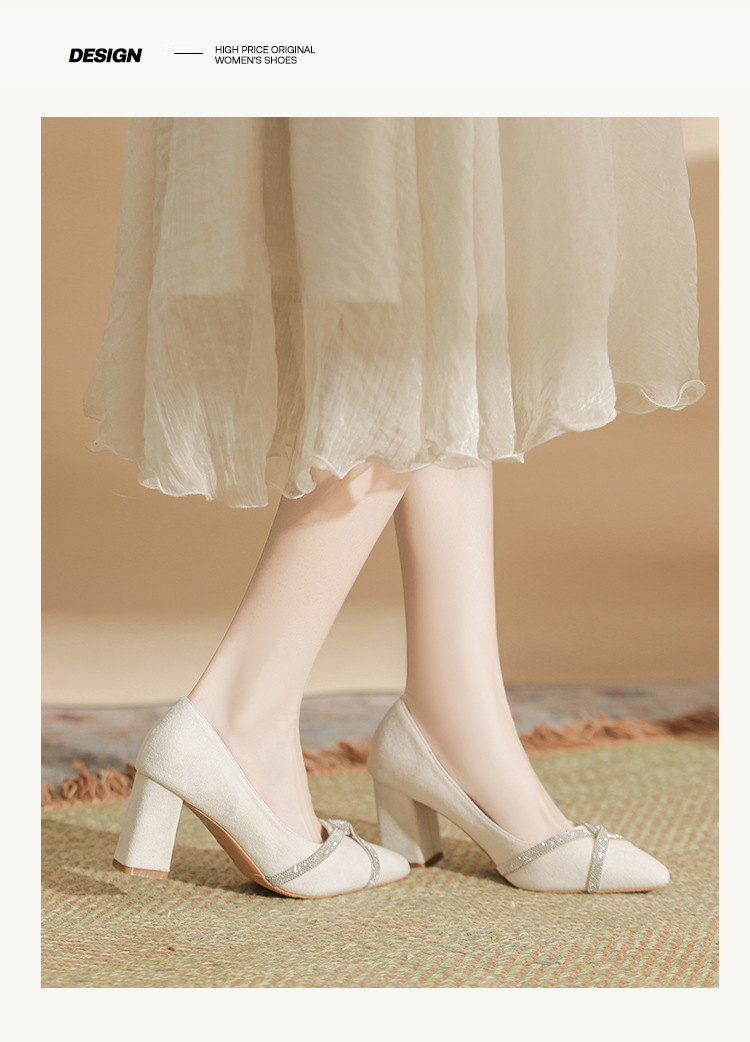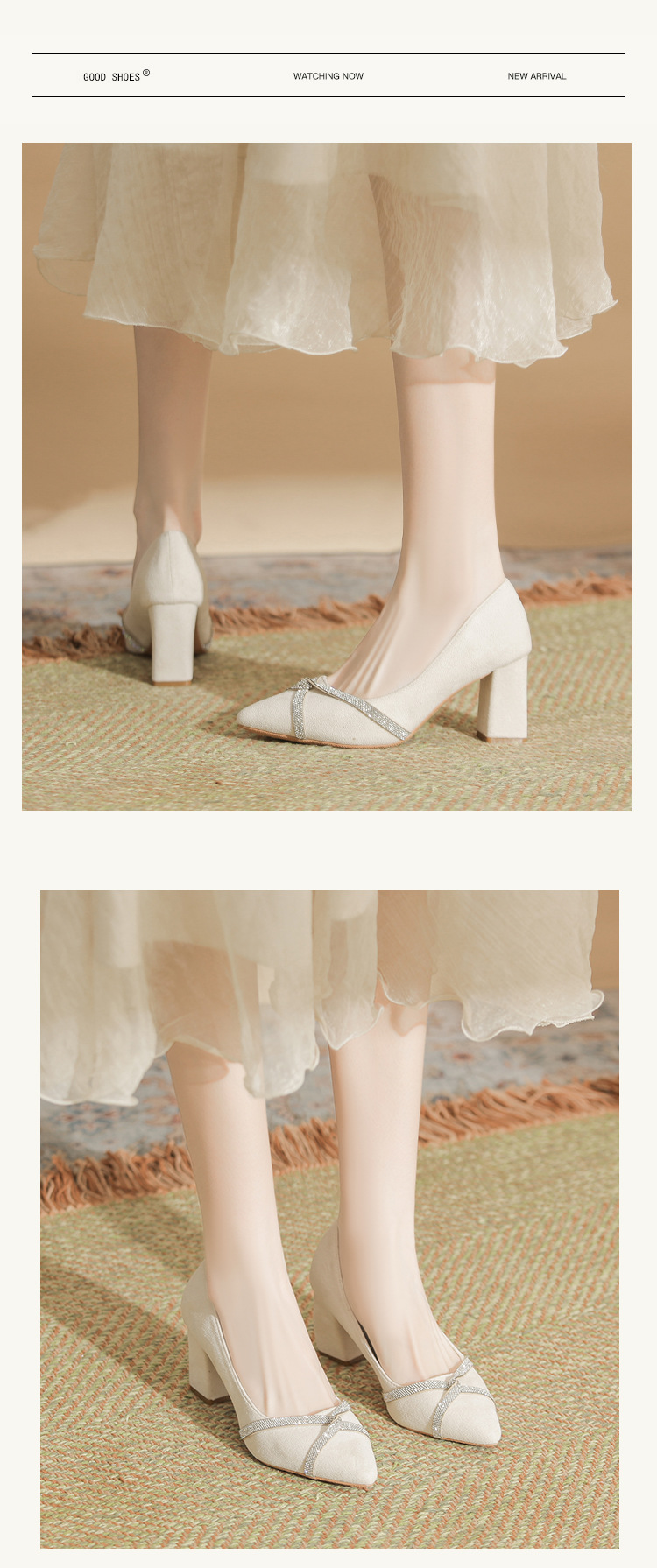 하이힐 여자 2025 뉴 스퀘어 헤드 두꺼운 힐을 플러스 사이즈 여성 싱글 슈즈를 살짝 넓힌 통근 작업 슈즈 라인스톤 올매치스토어 가기