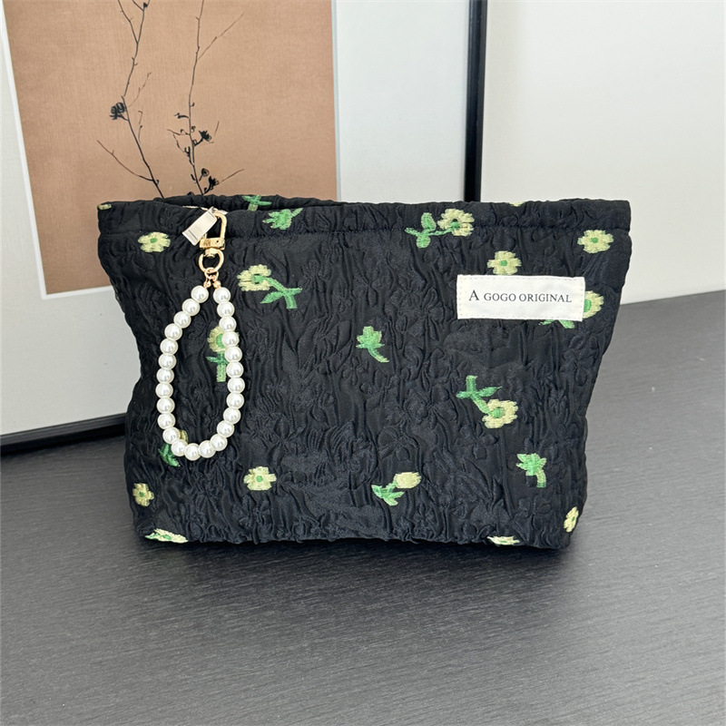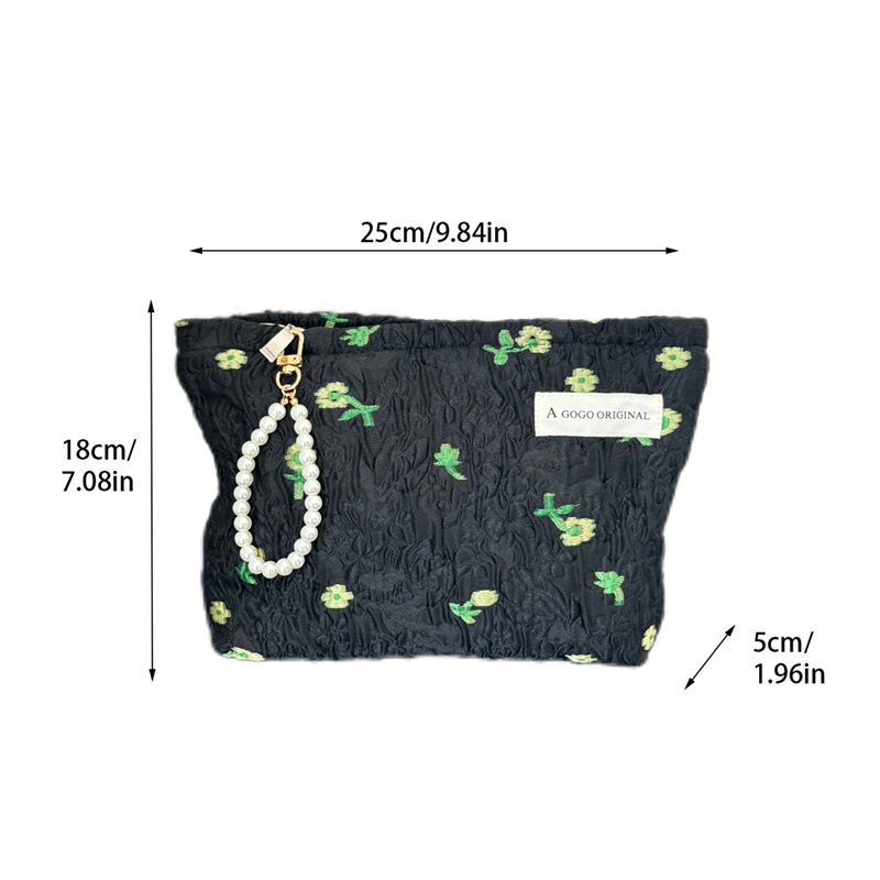 어두운 꽃 휴대용 자카드 화장품 가방 여행을위한 대용량 우아한 화장품 보관 가방