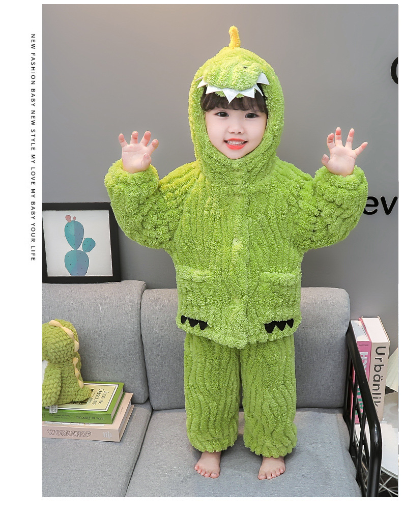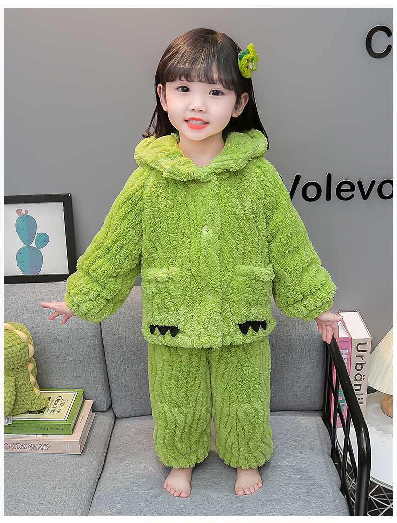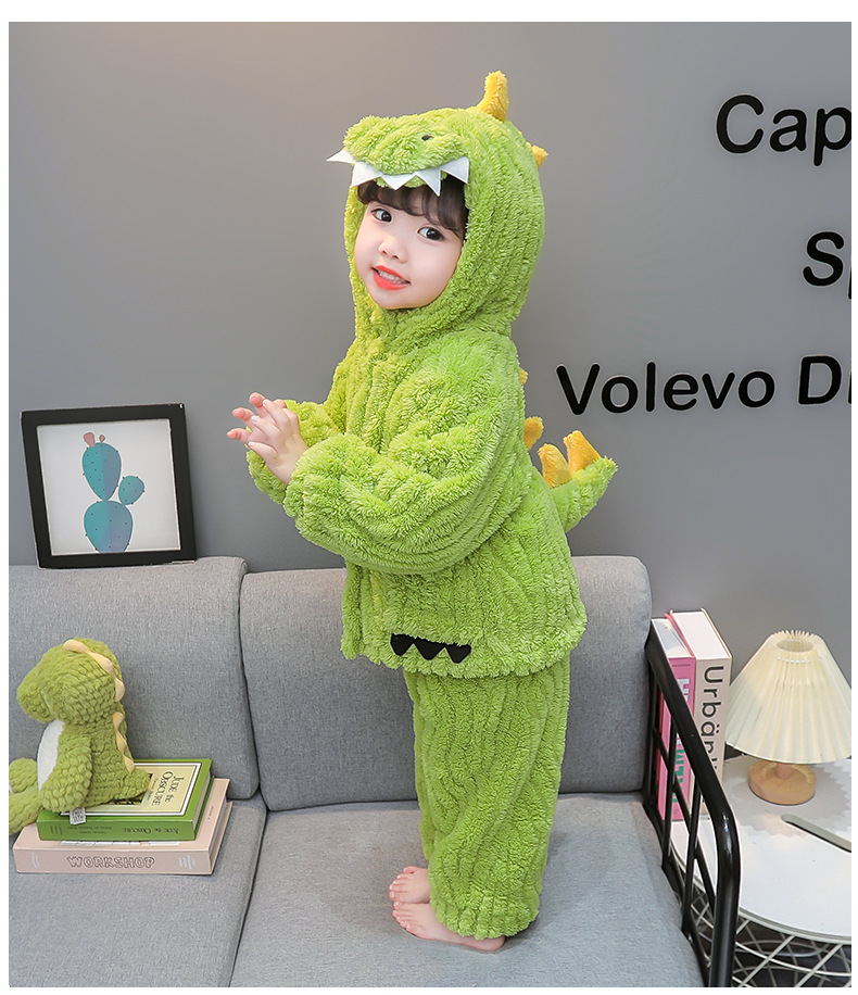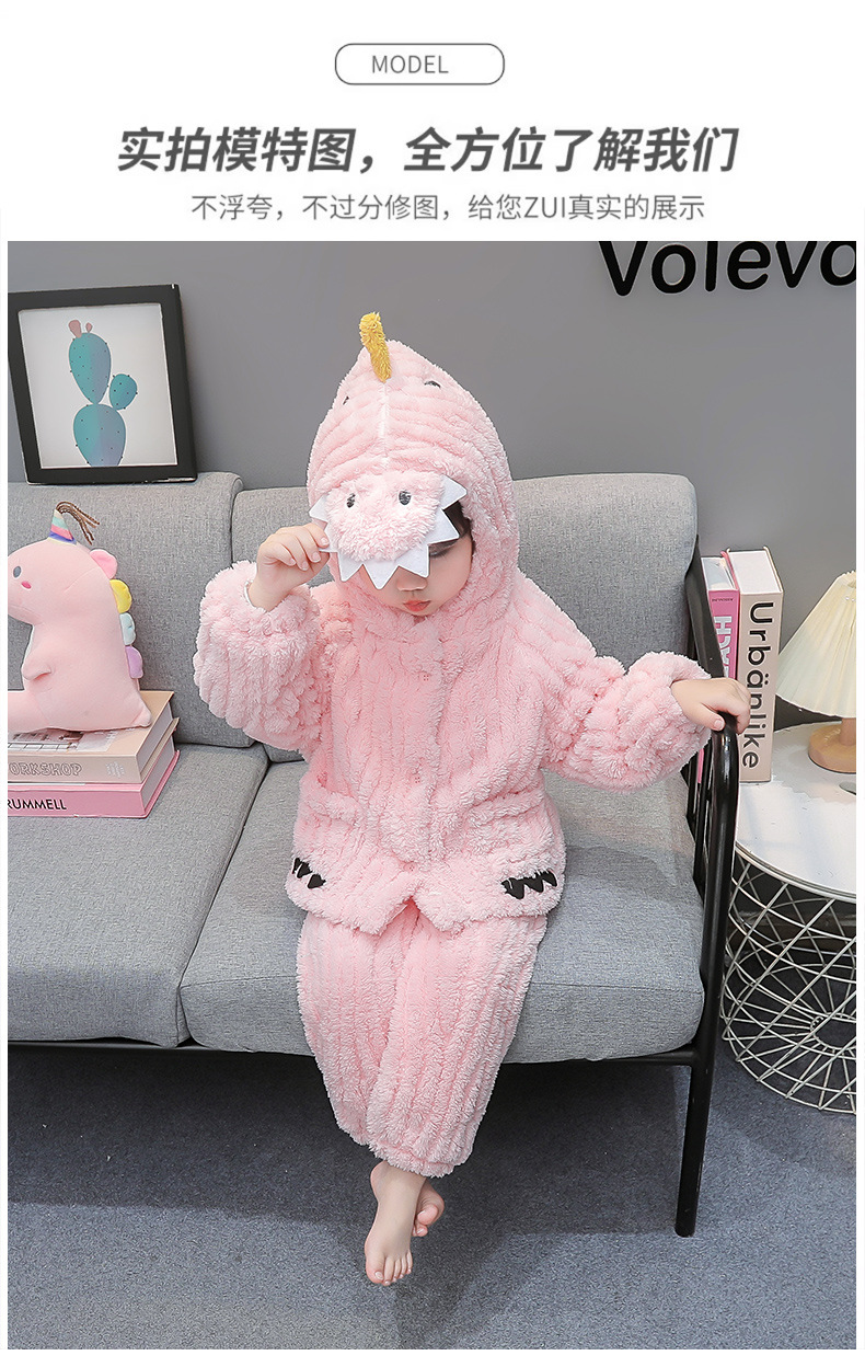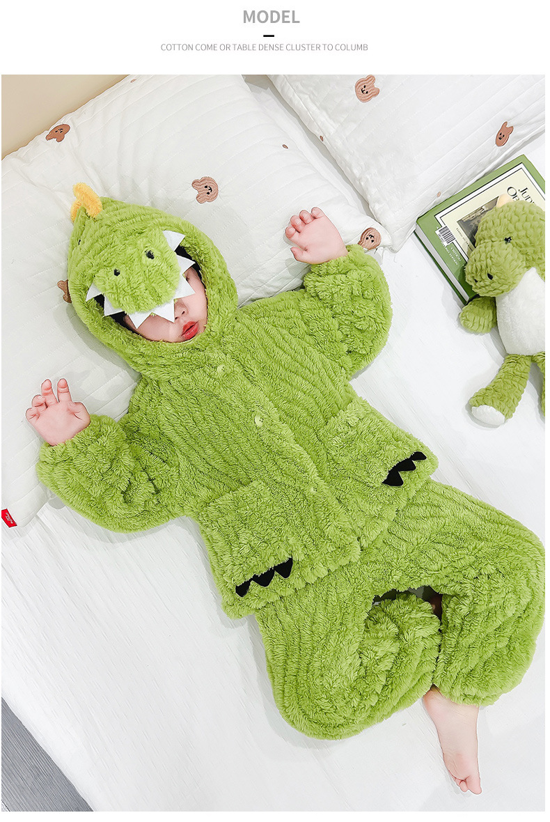 어린이 가을과 겨울 잠옷 소녀 플란넬 세트 2024 새로운 겨울 아기 공룡 산호 양털 집 옷스토어 가기