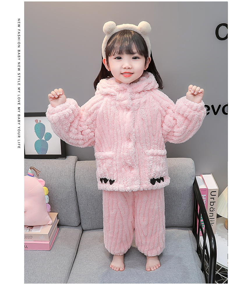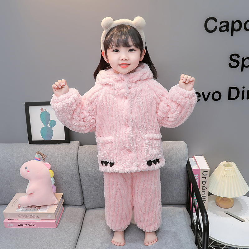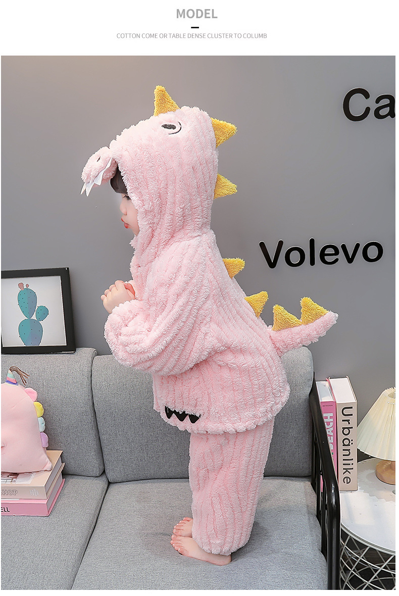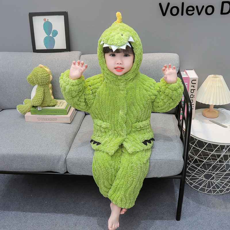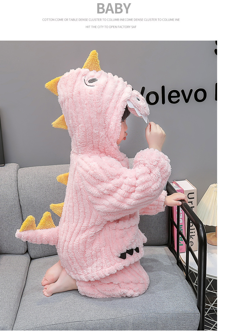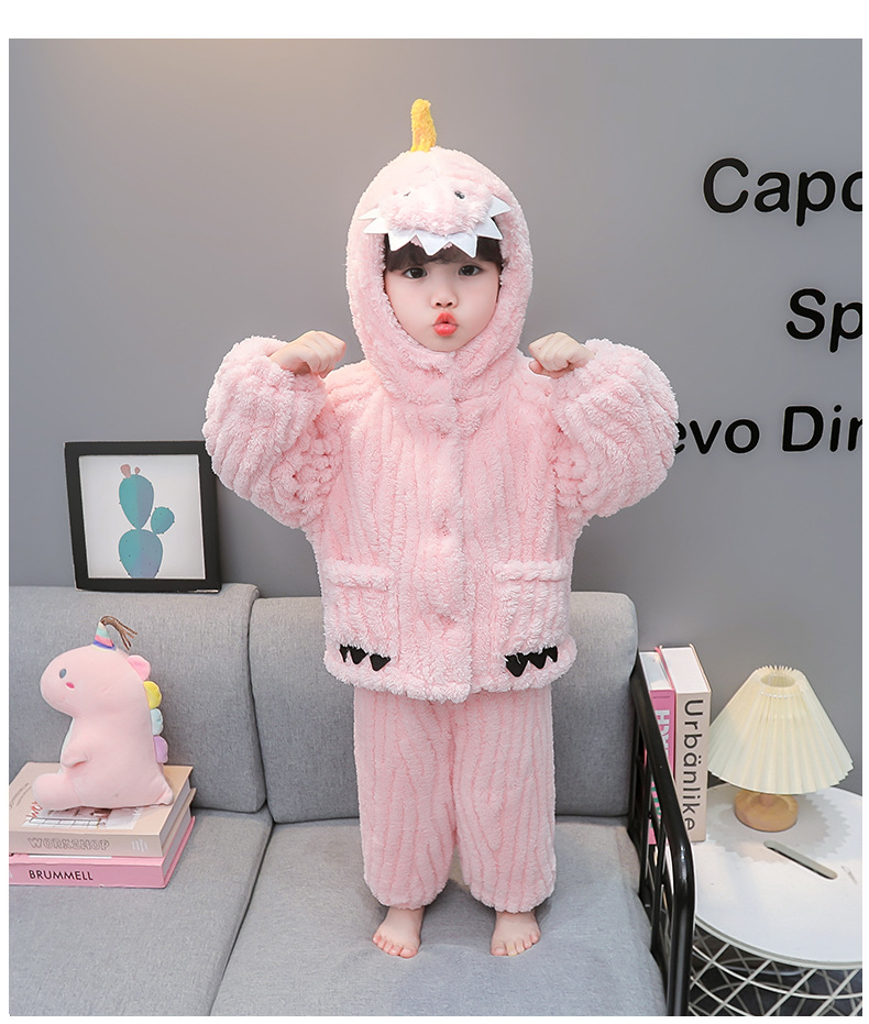 어린이 가을과 겨울 잠옷 소녀 플란넬 세트 2024 새로운 겨울 아기 공룡 산호 양털 집 옷스토어 가기