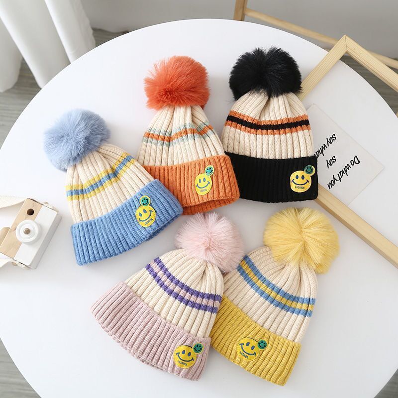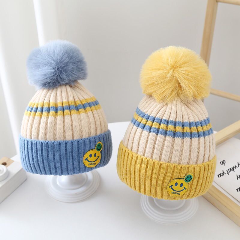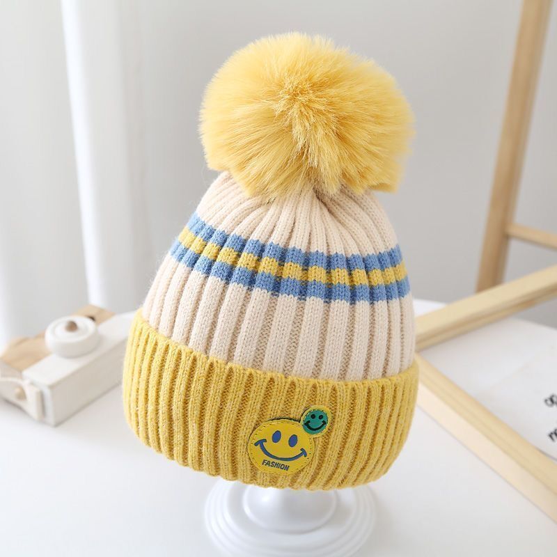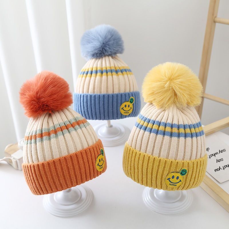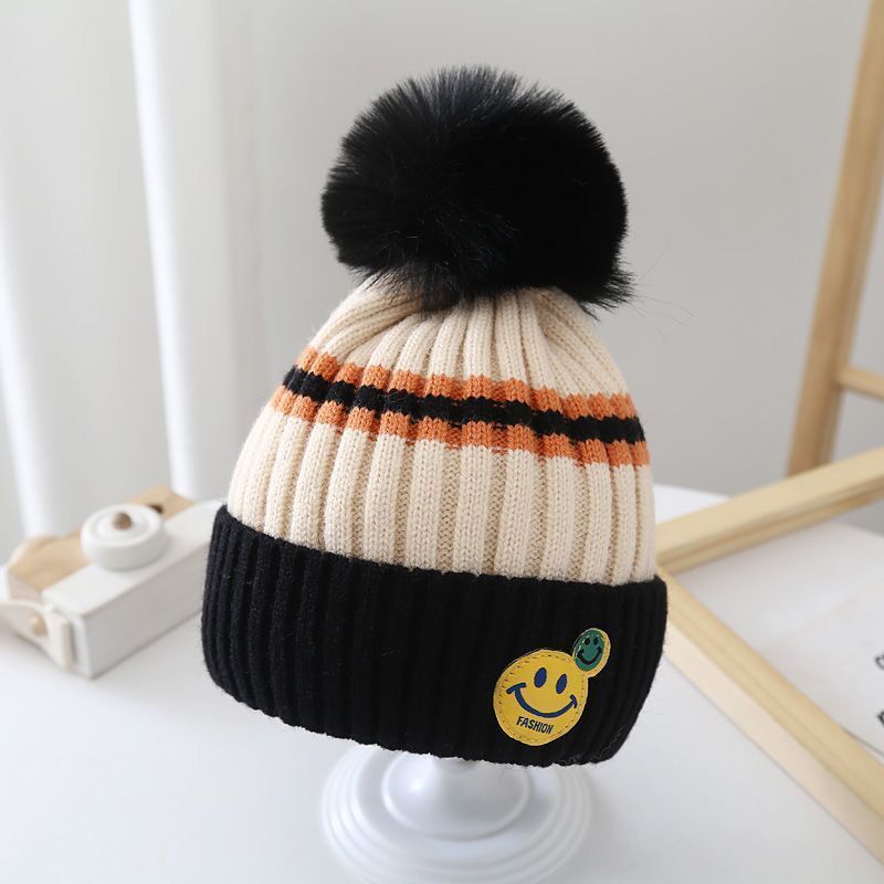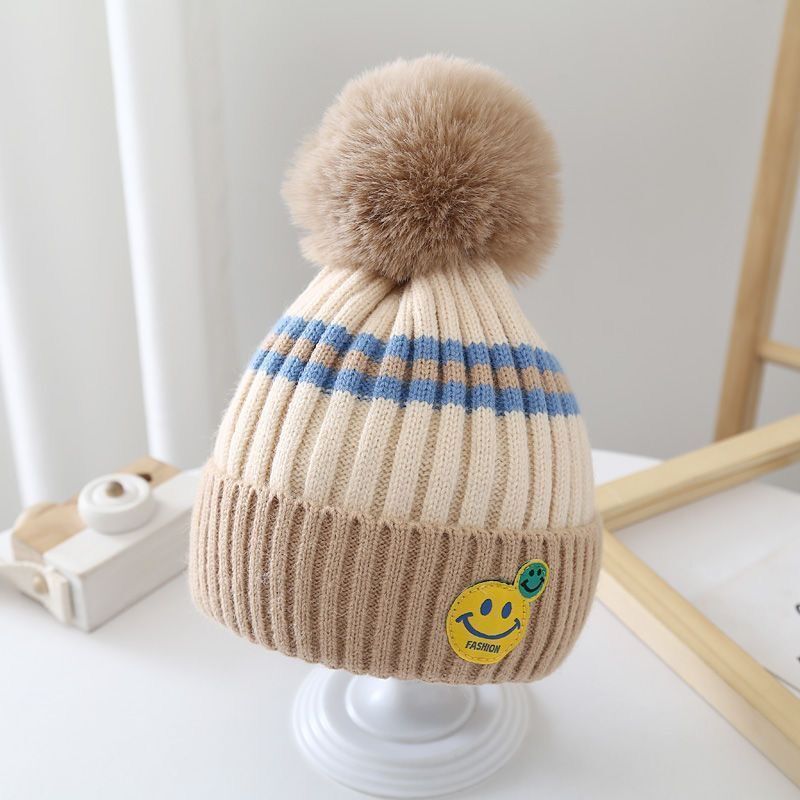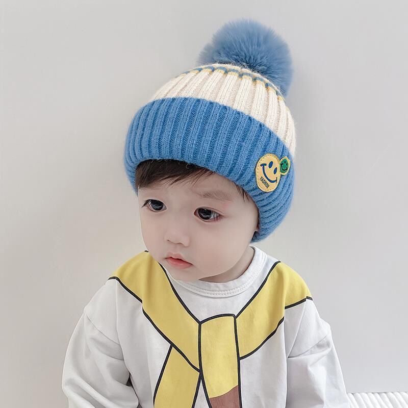 아기 모자 겨울 아기 양모 모자 귀 보호 따뜻한 면화 가을과 겨울 소년 소녀 어린이 모피 공 니트 모자