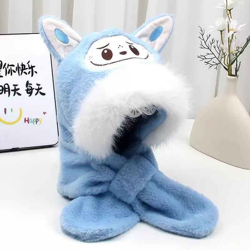 가을 겨울 새로운 멜로디 계피 개 끈 어린이 모자 스카프 올인원 모자 겨울 따뜻하고 귀여운 만화스토어 가기