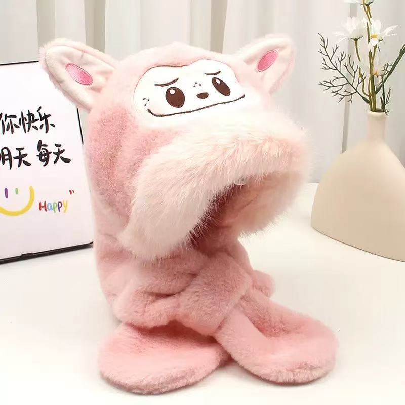가을 겨울 새로운 멜로디 계피 개 끈 어린이 모자 스카프 올인원 모자 겨울 따뜻하고 귀여운 만화