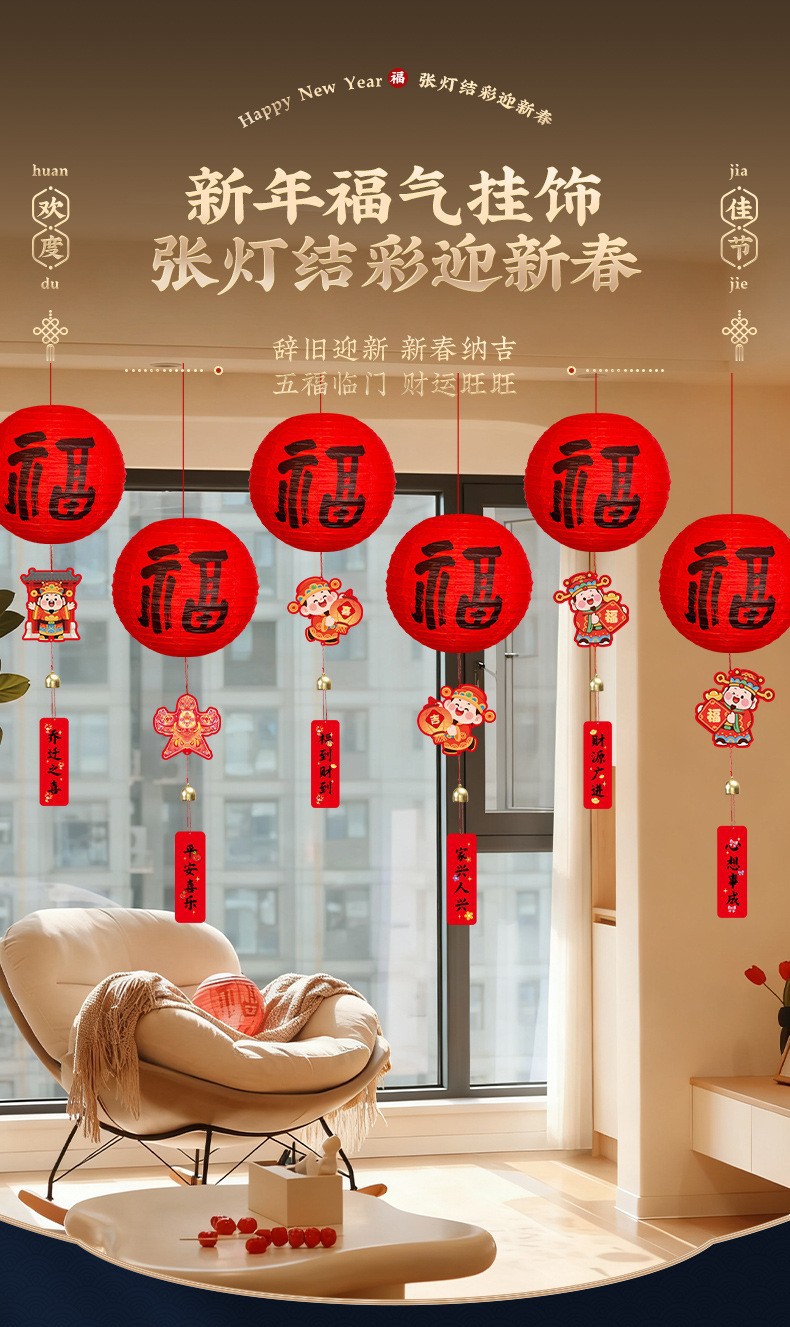 • 【복이 깃들어 재물이 들어오고, 가정이 번성하며 가족이 행복하길】 복 글자 등불 장식
