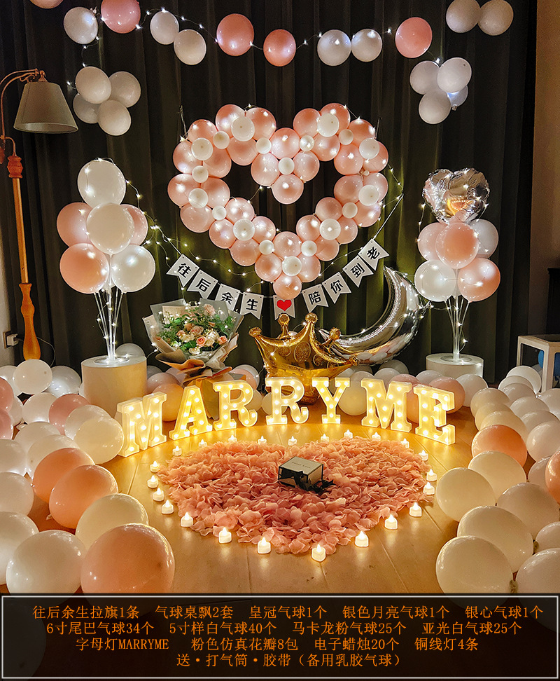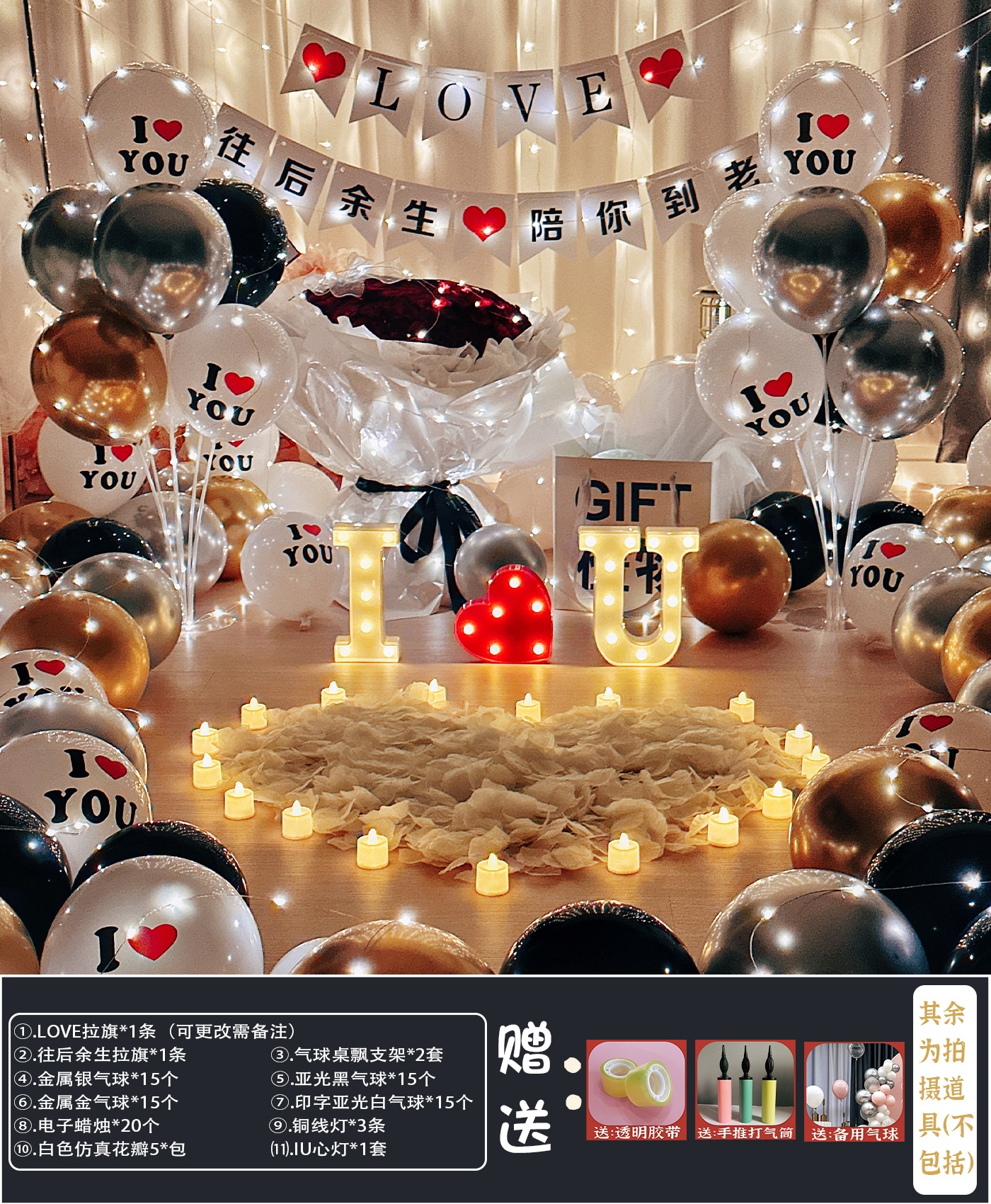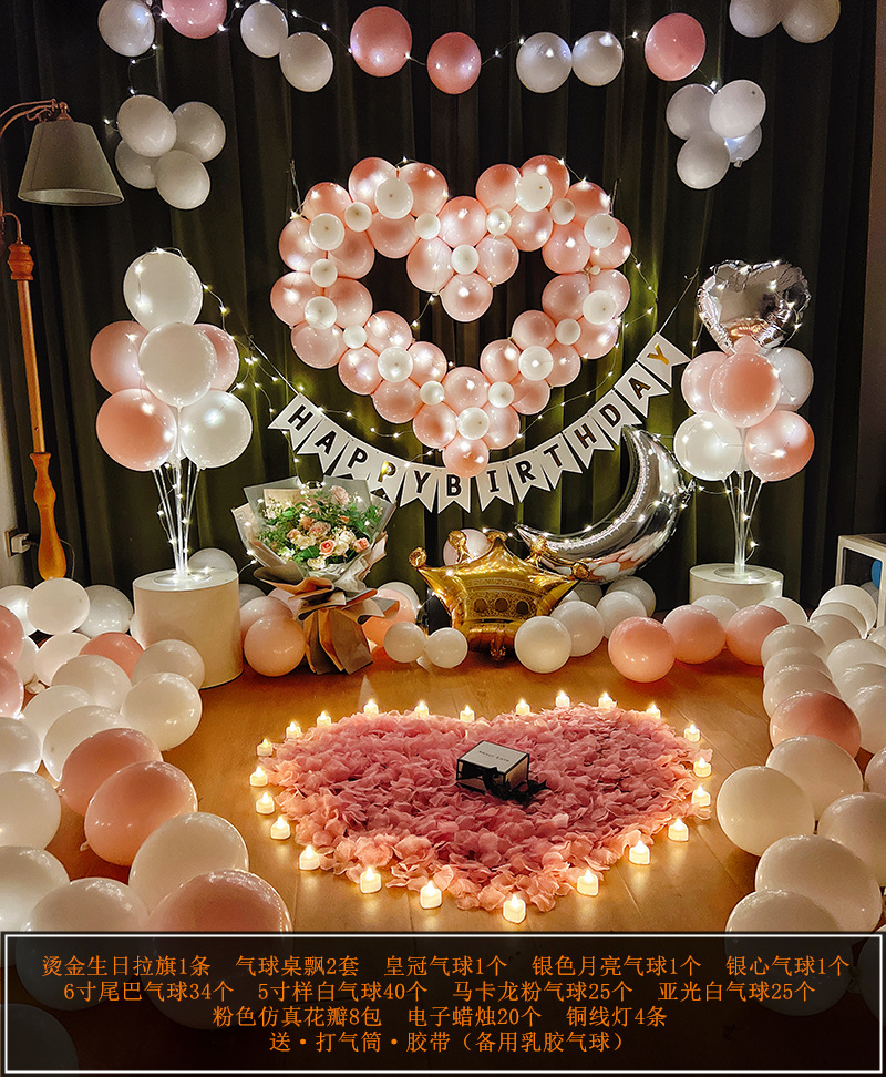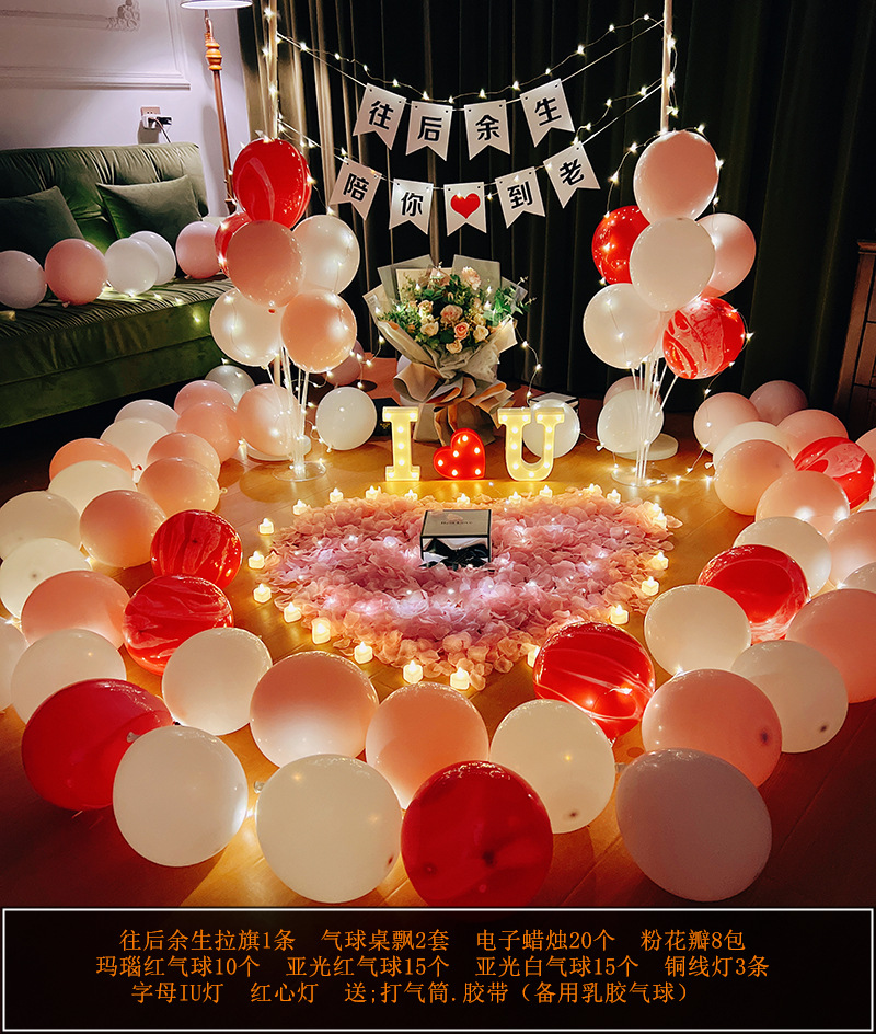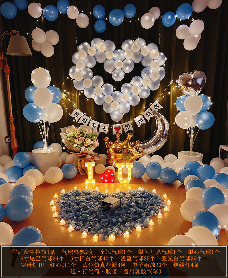기념일 서프라이즈 낭만적 인 장면 장식 Tanabata 발표 LED 제안 풍선 배경 벽 배치