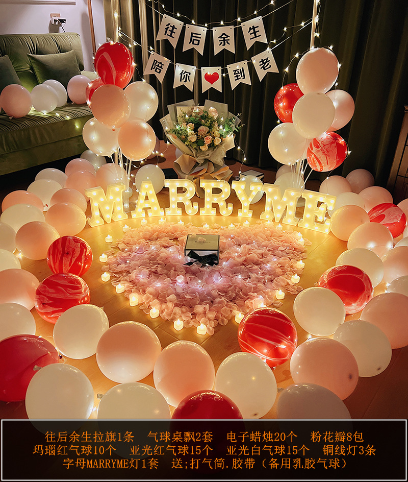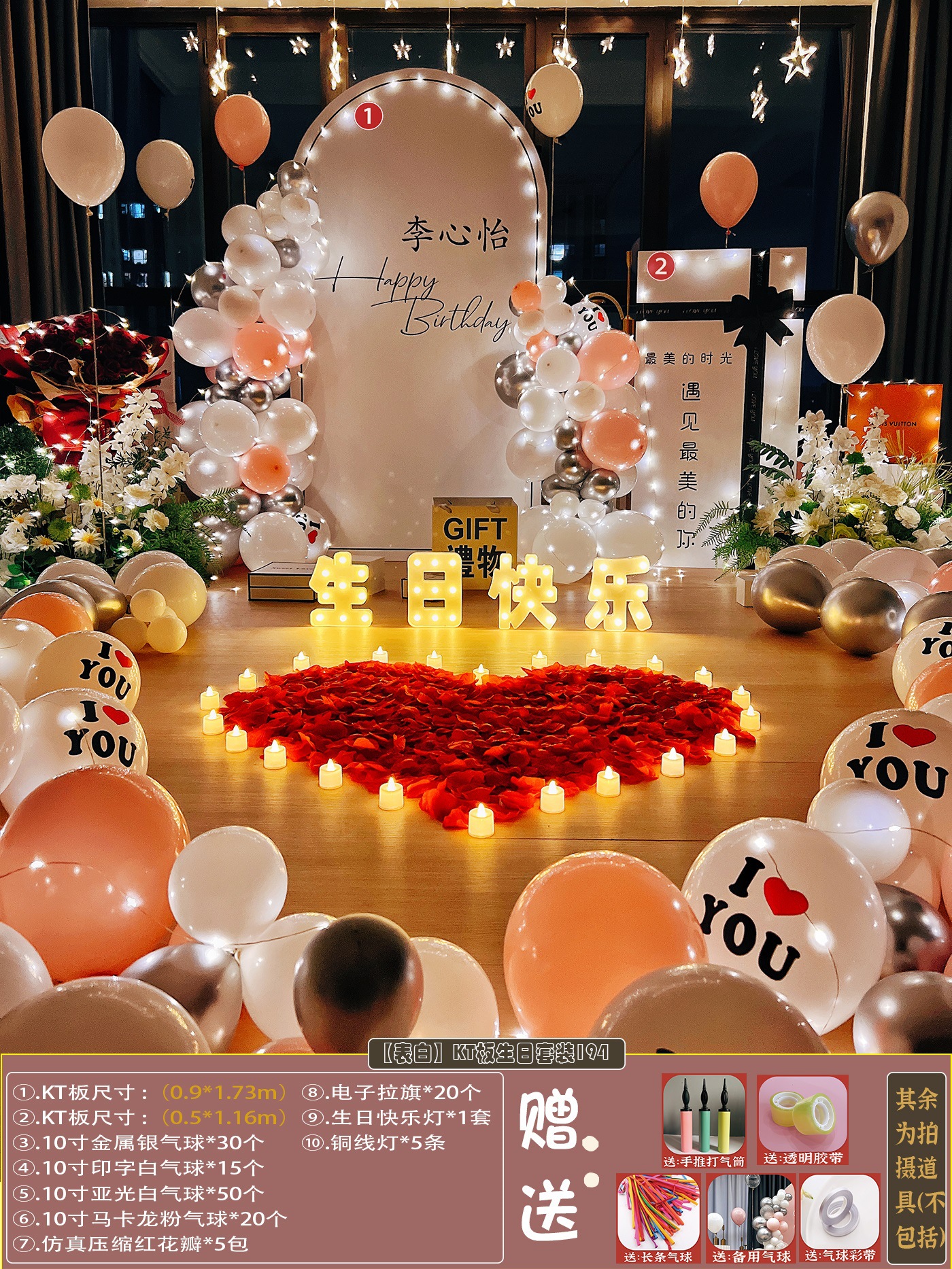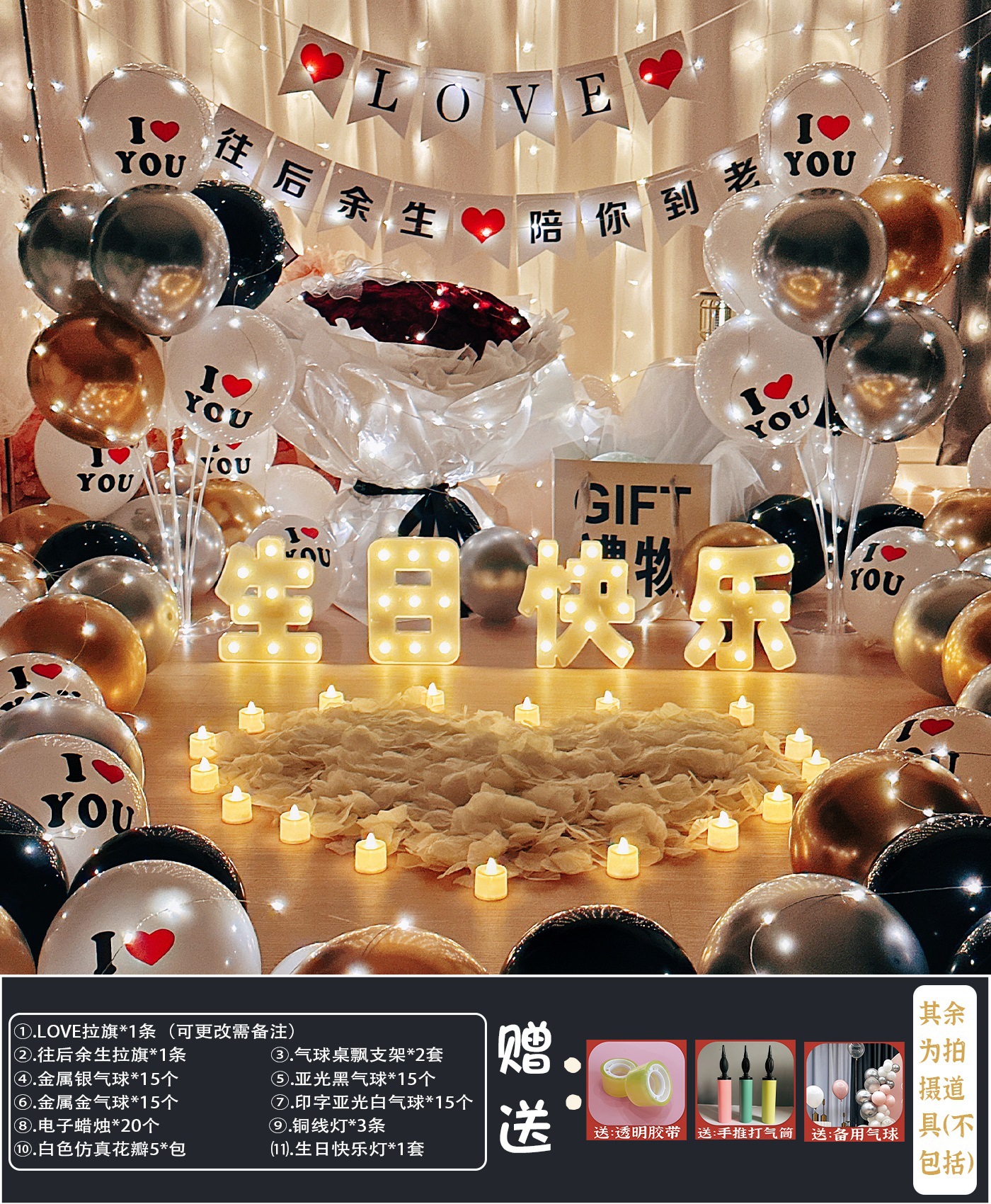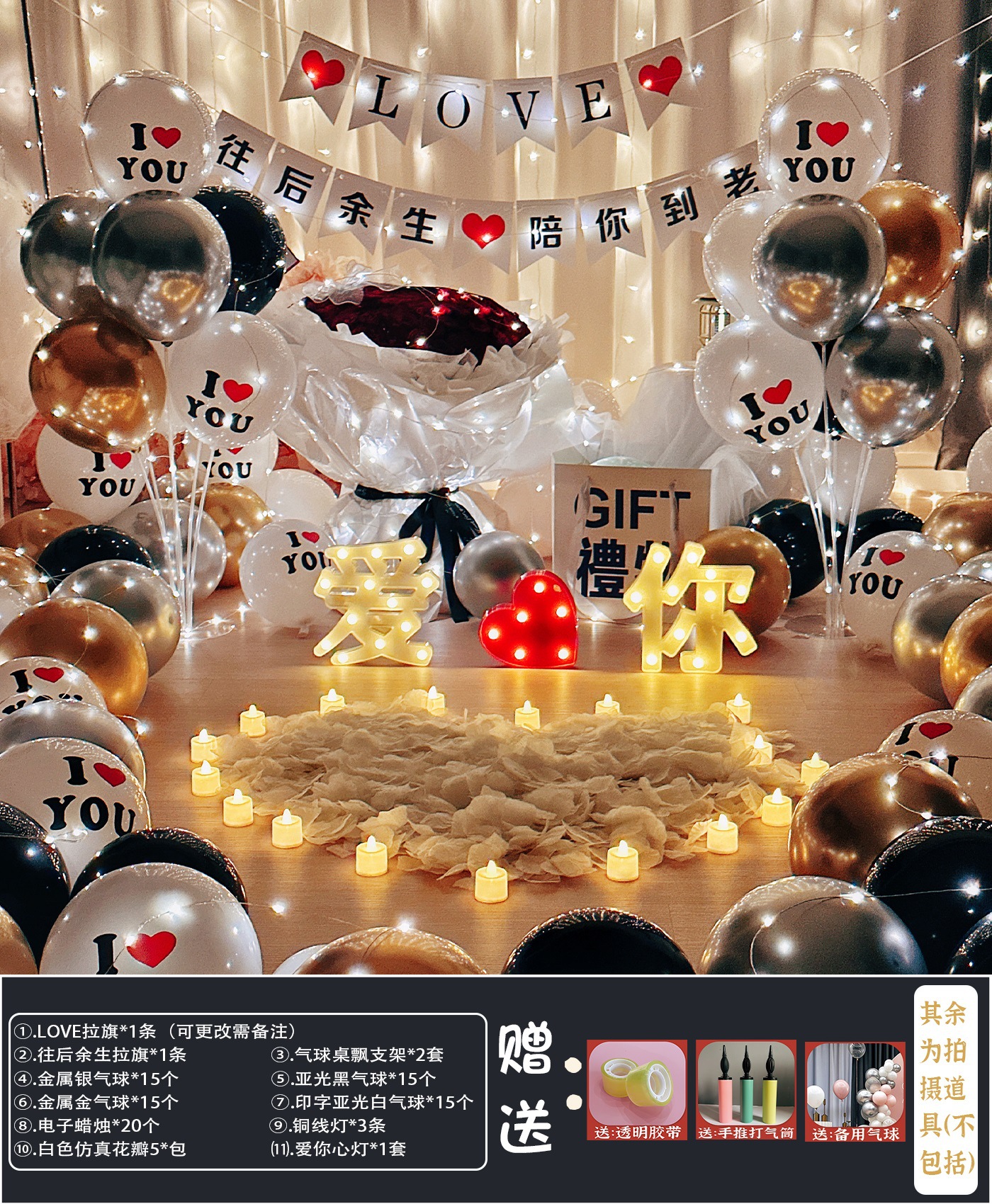 기념일 서프라이즈 낭만적 인 장면 장식 Tanabata 발표 LED 제안 풍선 배경 벽 배치