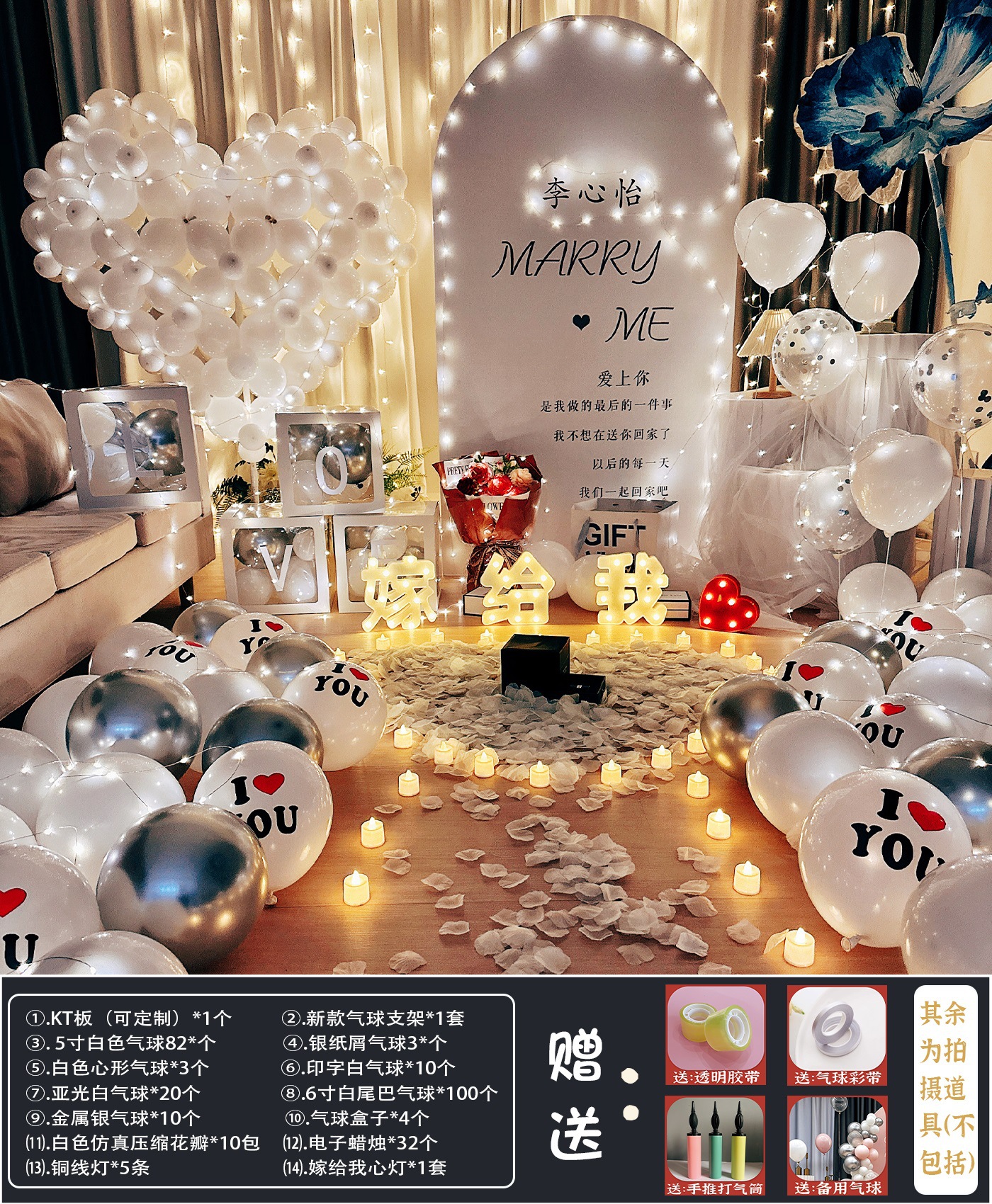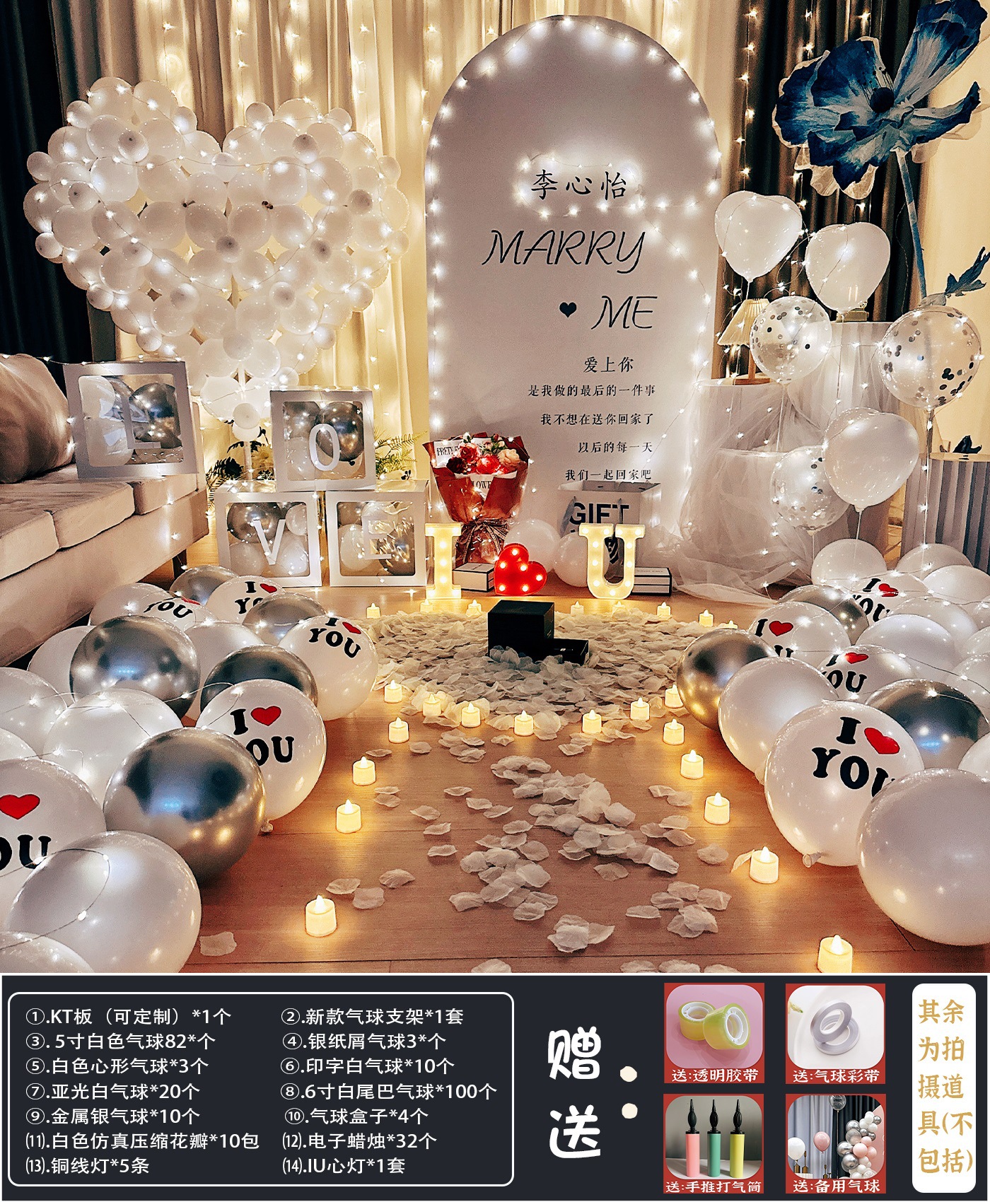 기념일 서프라이즈 낭만적 인 장면 장식 Tanabata 발표 LED 제안 풍선 배경 벽 배치스토어 가기