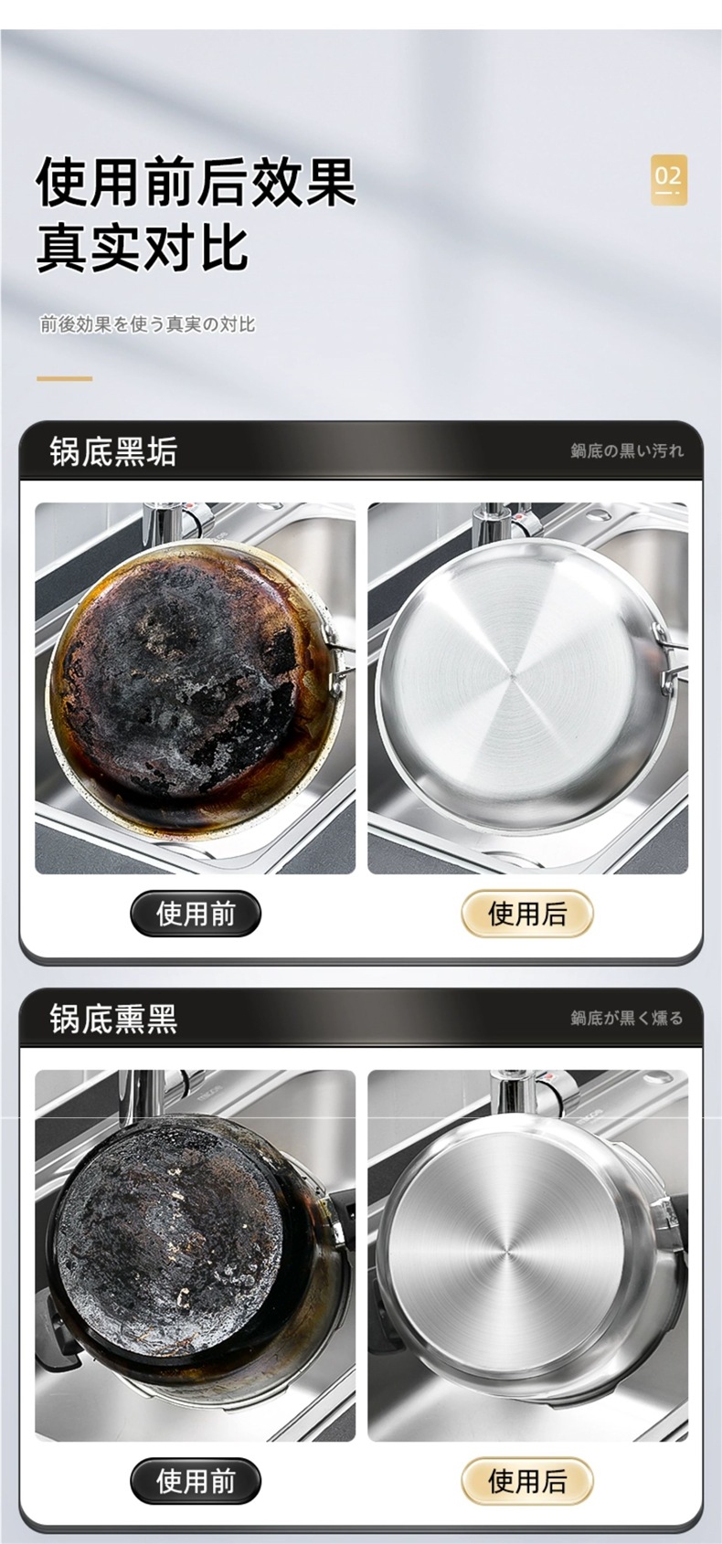 일본 냄비 바닥 블랙 스케일 클리너 스테인레스 스틸 버닝 녹 제거 리퍼브 주방 가정용 조리기구 오염 제거