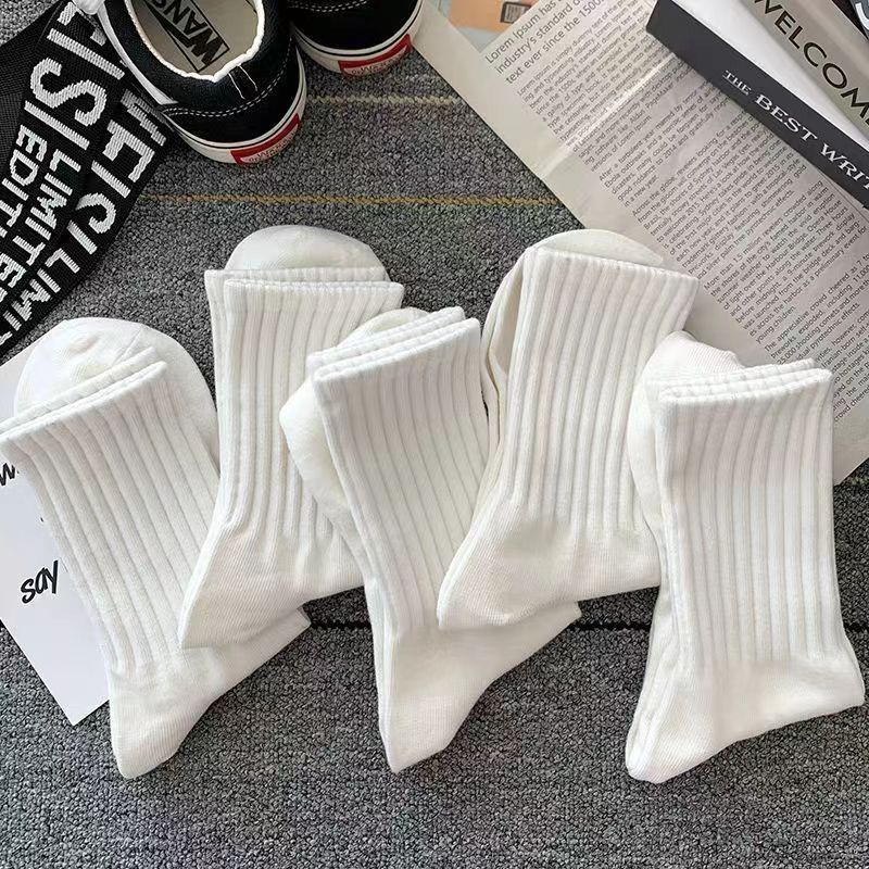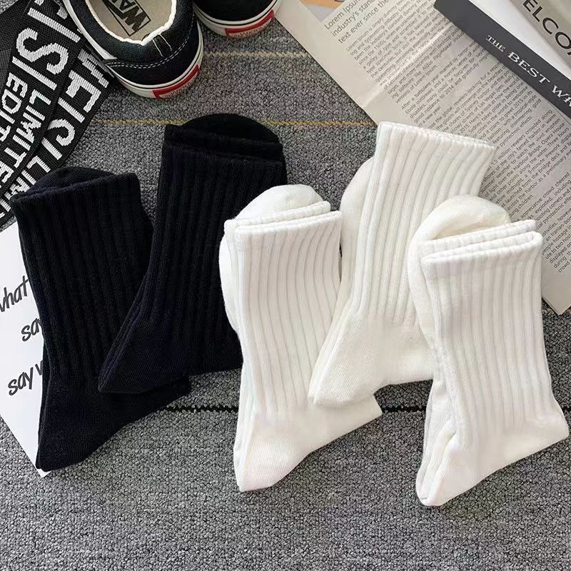 남성과 여성을위한 80 쌍의 미드 튜브 양말 흑백 봄, 여름과 가을 두꺼운 라인 탈취제 땀 흡수성 통기성 비 탄성 스포츠 양말