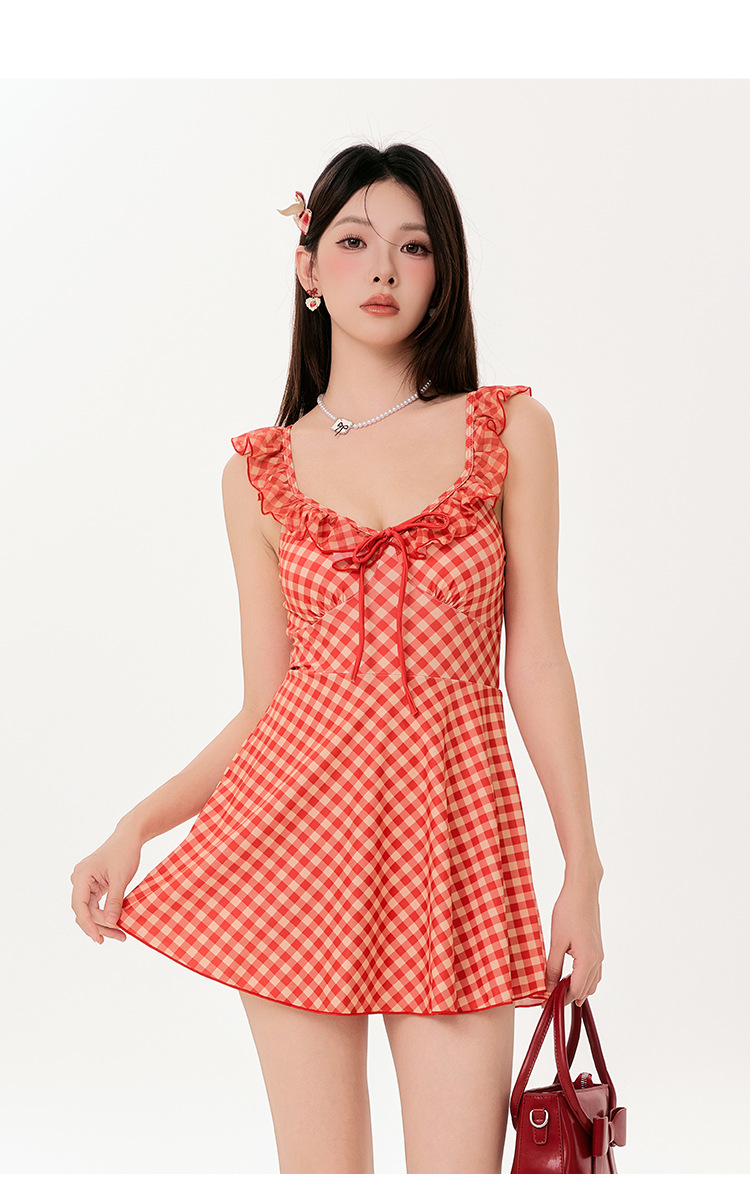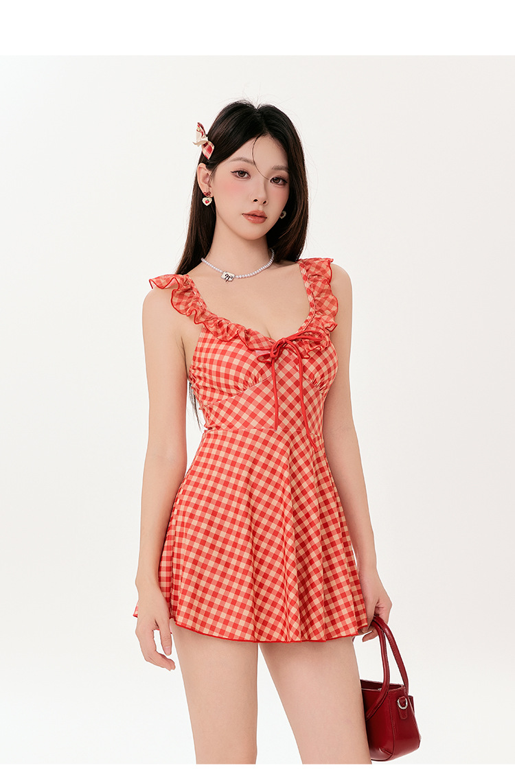 태국의 틈새 순수 바람 2025 새로운 슬림 고기 덮인 해변 보수적 온천 원피스 수영복 여성 제조업체 도매