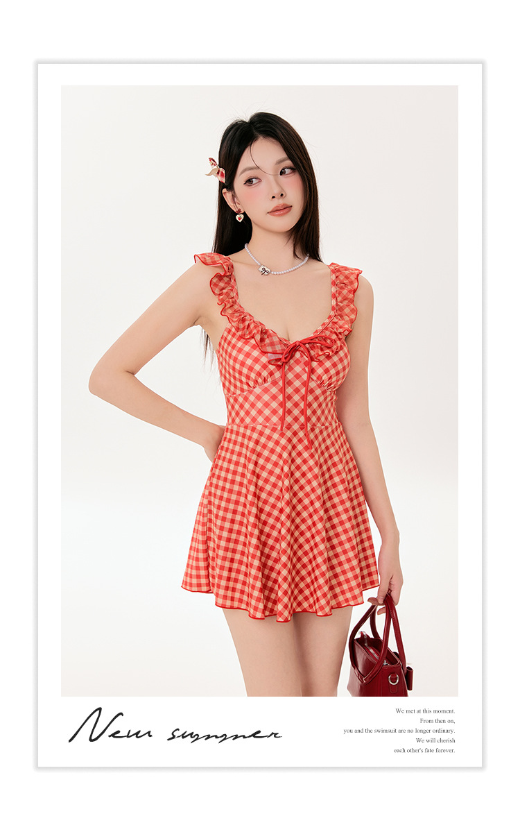 태국의 틈새 순수 바람 2025 새로운 슬림 고기 덮인 해변 보수적 온천 원피스 수영복 여성 제조업체 도매스토어 가기