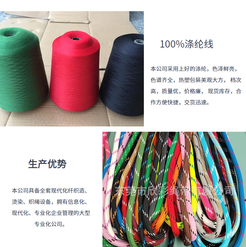 공장 공급 컬러 폴리 에스테르 로프 컬러 점프 포인트 모든 종류의 컬러 라운드 로프 짠 가방 휴대 전화 의류스토어 가기