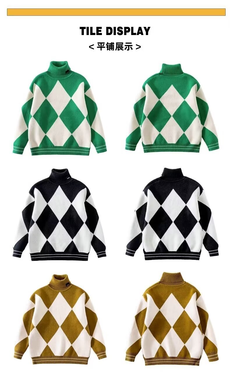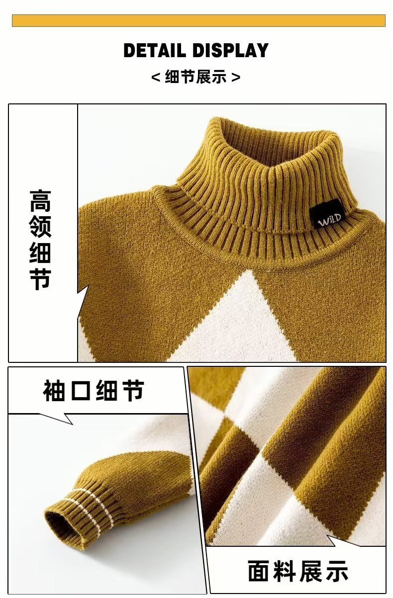 어린이 겨울복 소년 스웨터 2024 새로운 소년 가을과 겨울 높은 칼라 두꺼운 컬러 블록 니트 탑 큰 어린이 유행스토어 가기