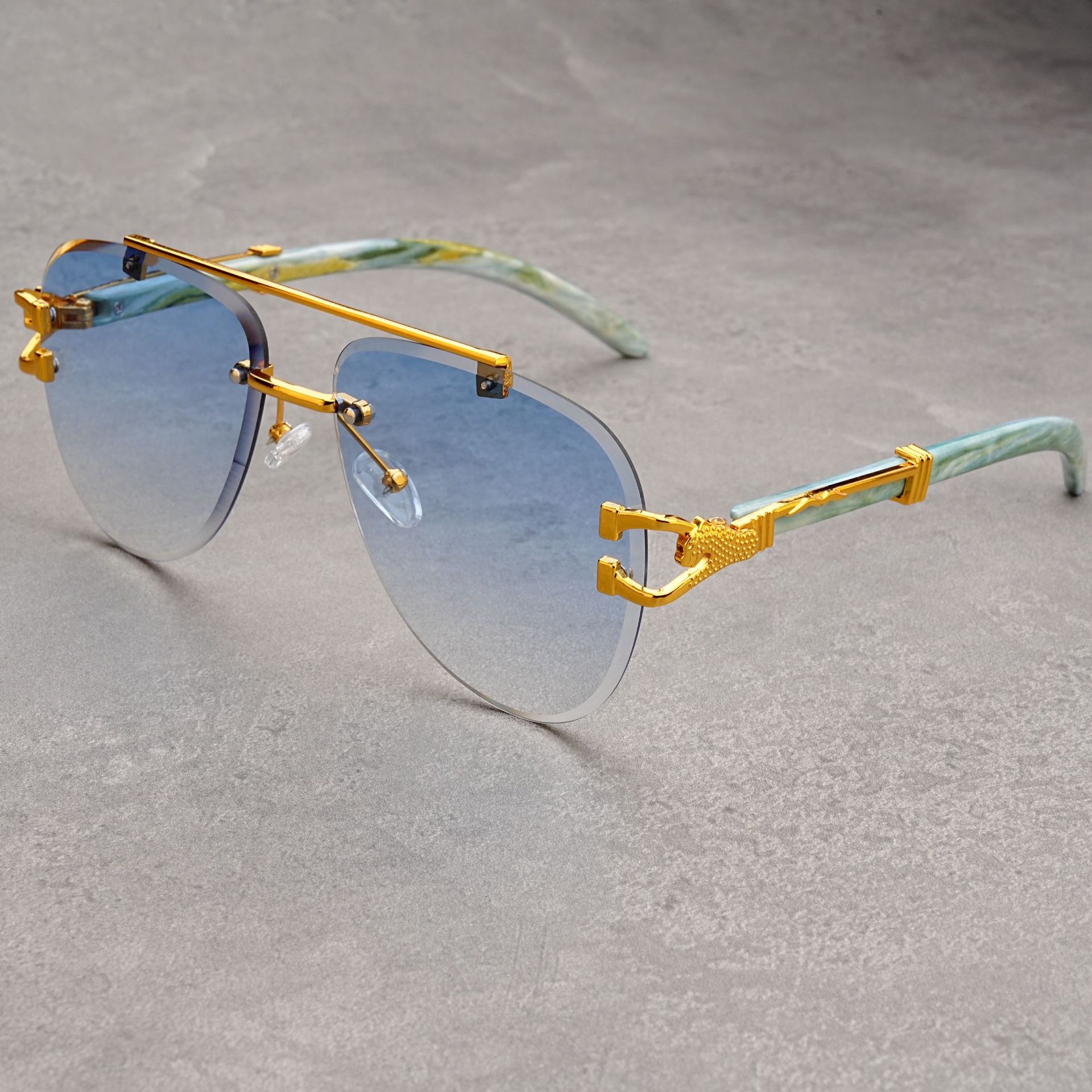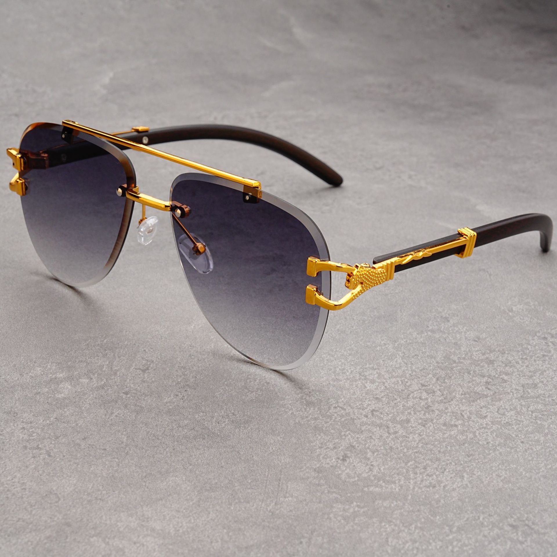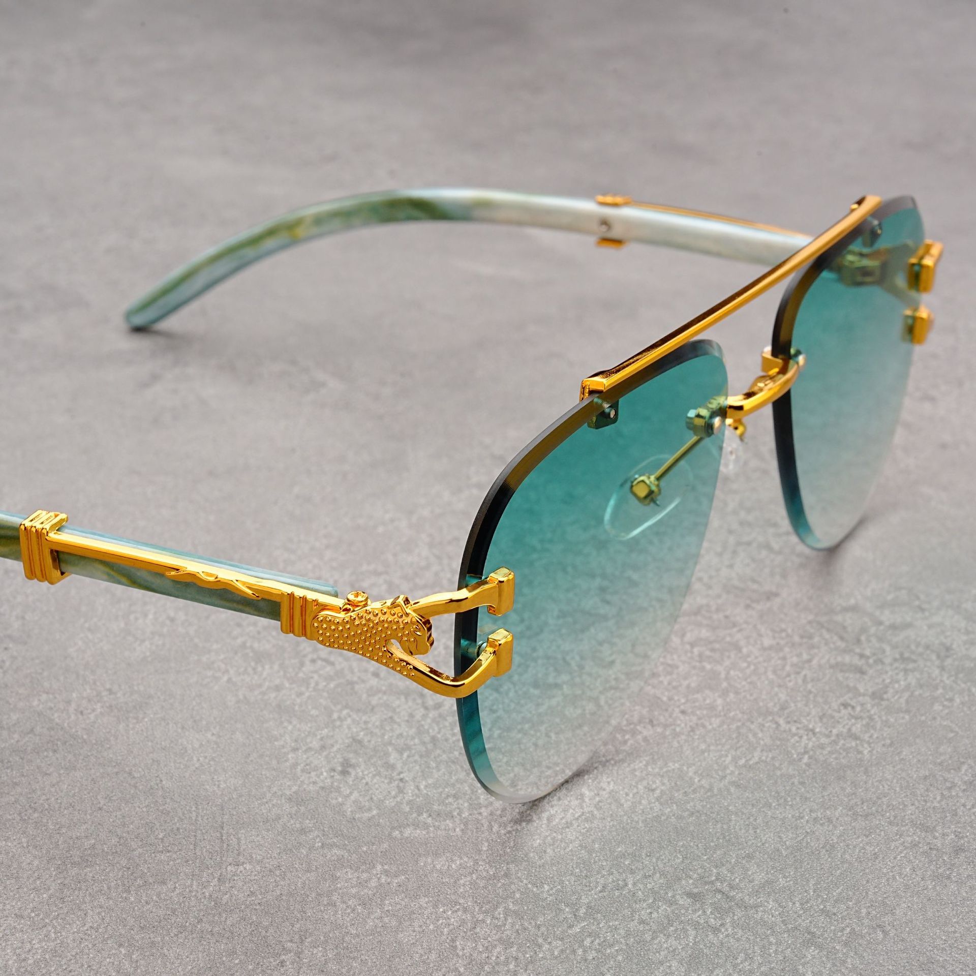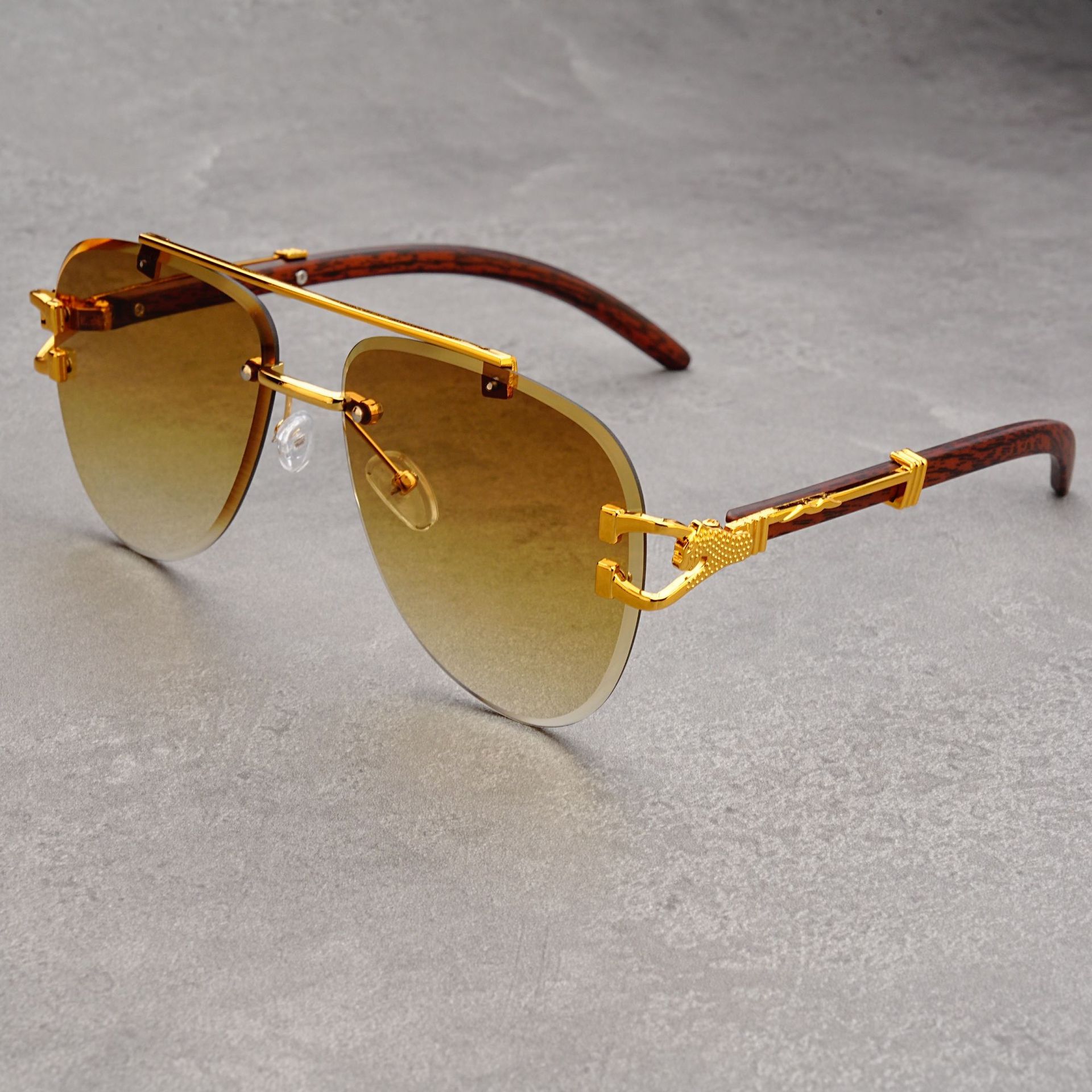 유럽과 미국의 복고풍 치타 나뭇결 다리 더블 빔 선글라스 세련된 무테 컷 엣지 오션 피스 두꺼비 거울 선글라스 트렌디