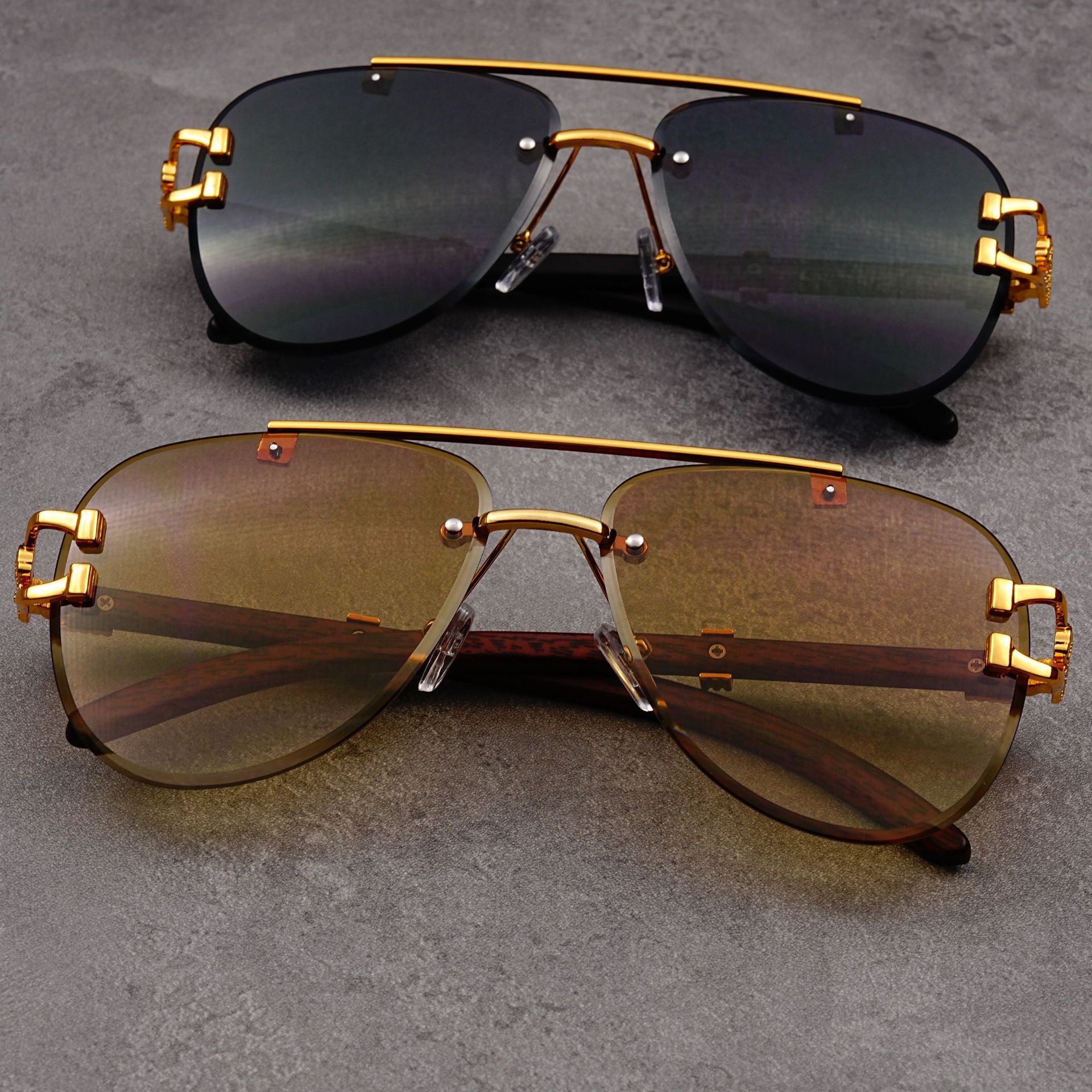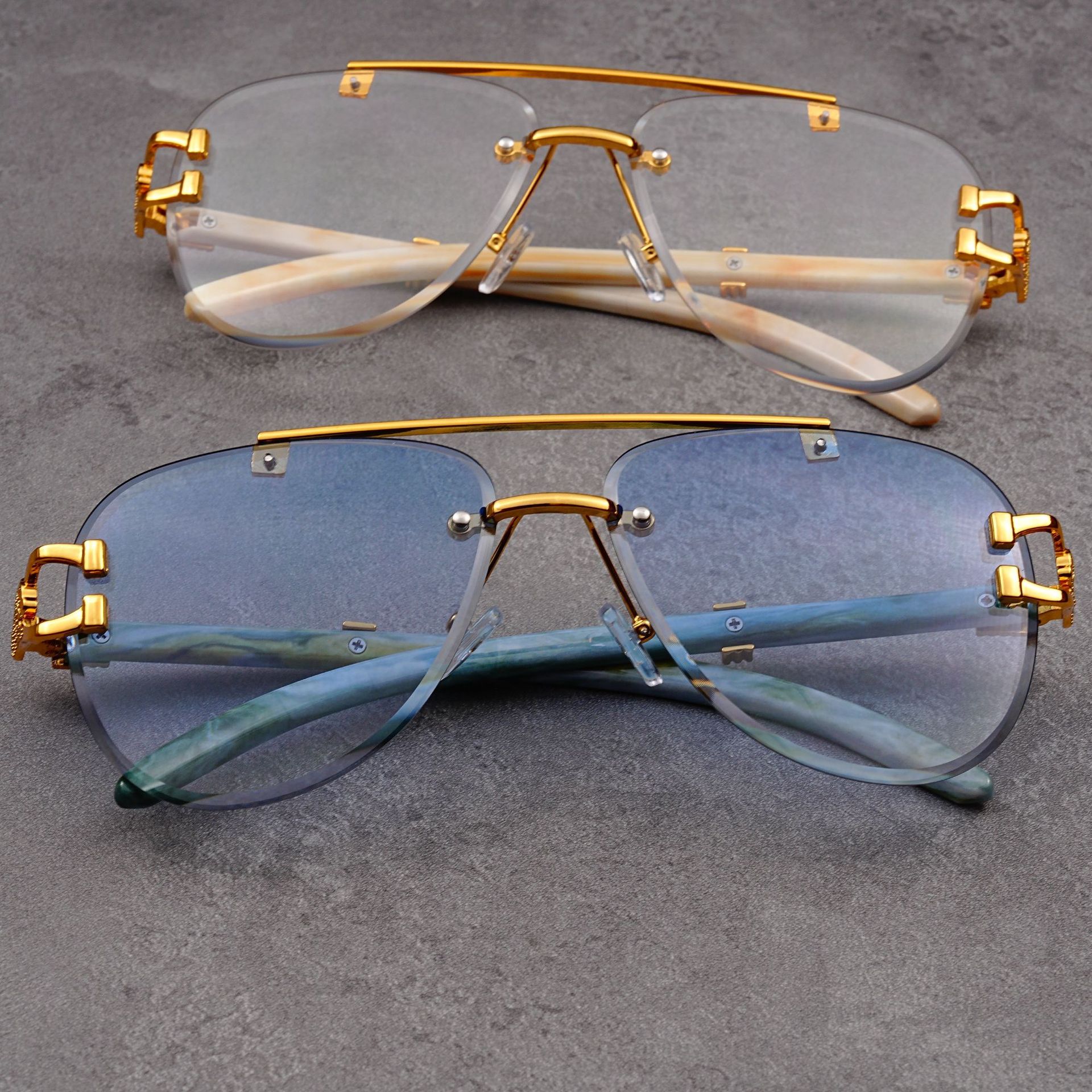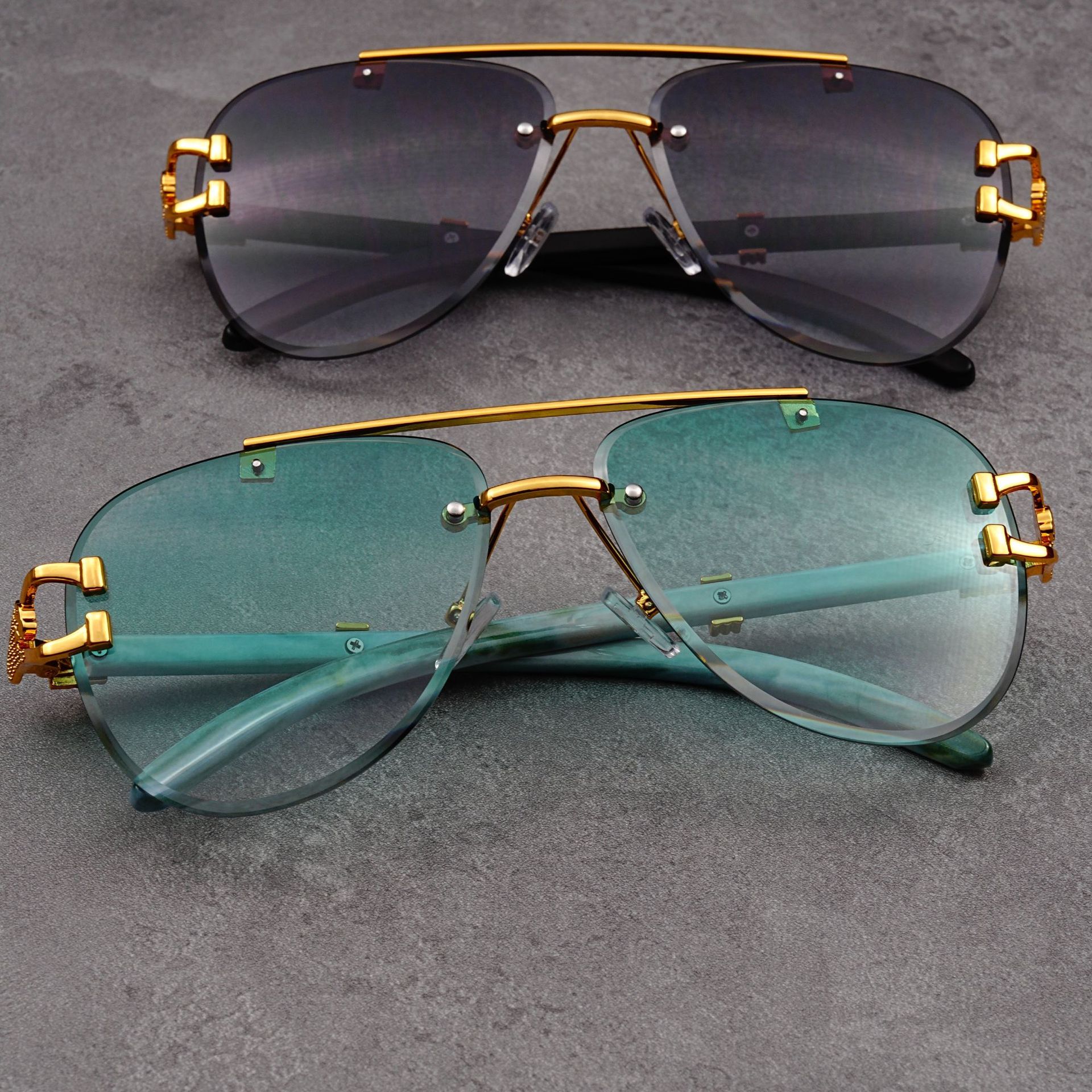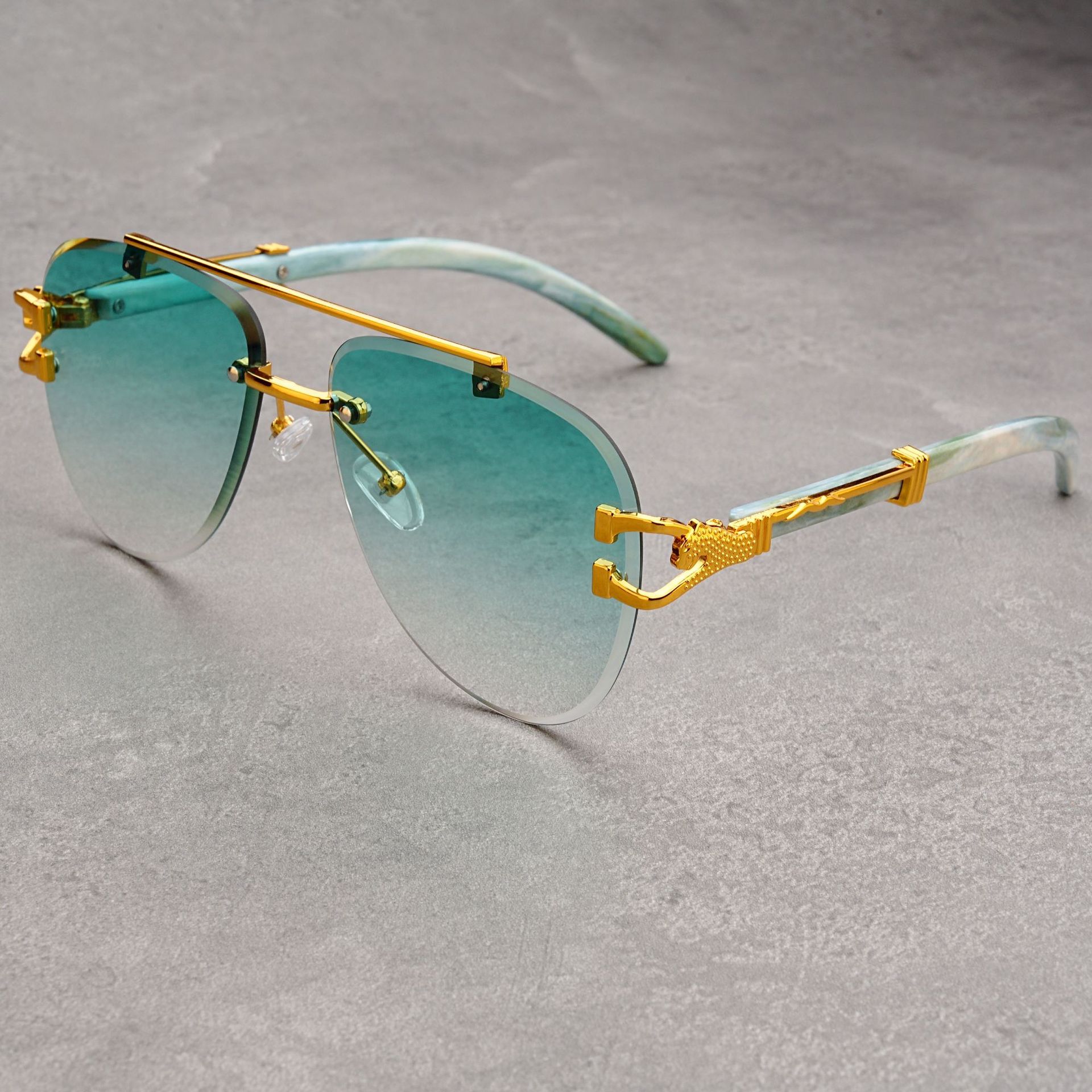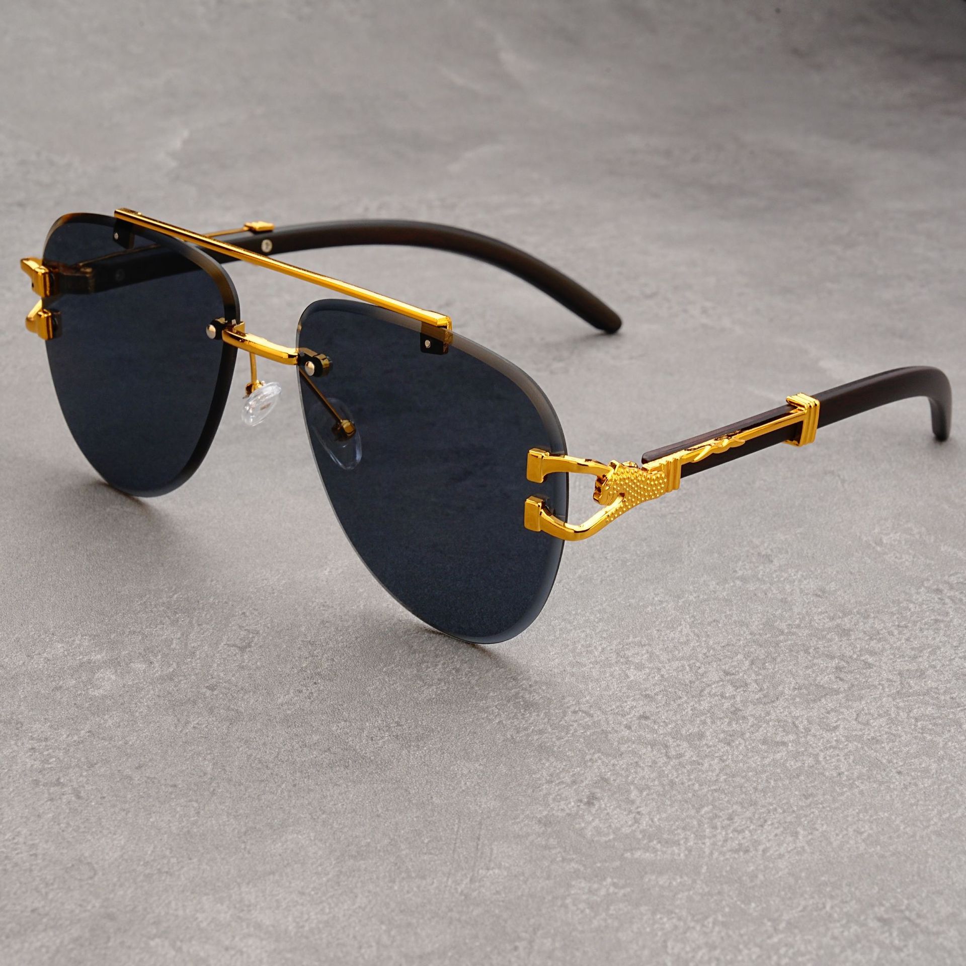 유럽과 미국의 복고풍 치타 나뭇결 다리 더블 빔 선글라스 세련된 무테 컷 엣지 오션 피스 두꺼비 거울 선글라스 트렌디