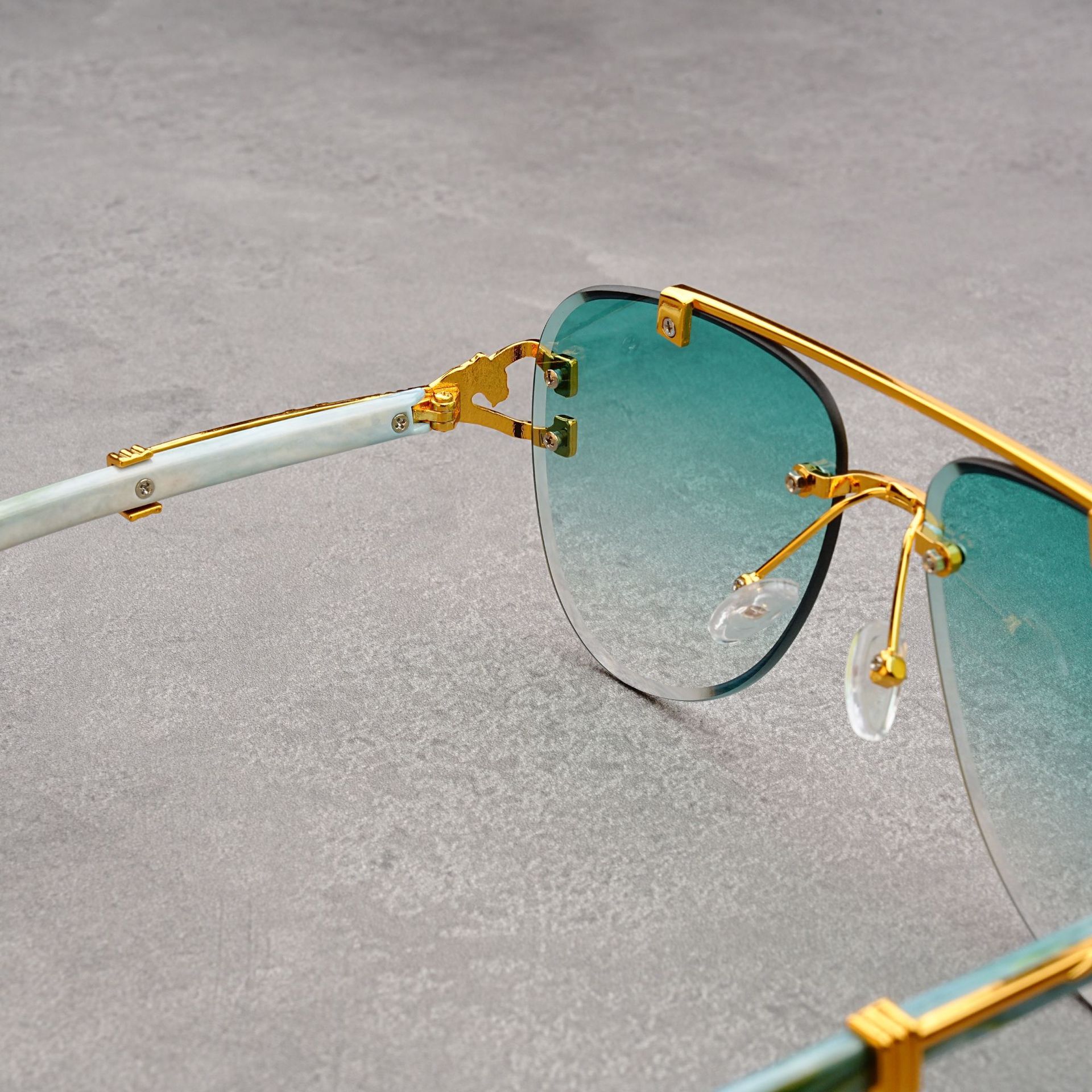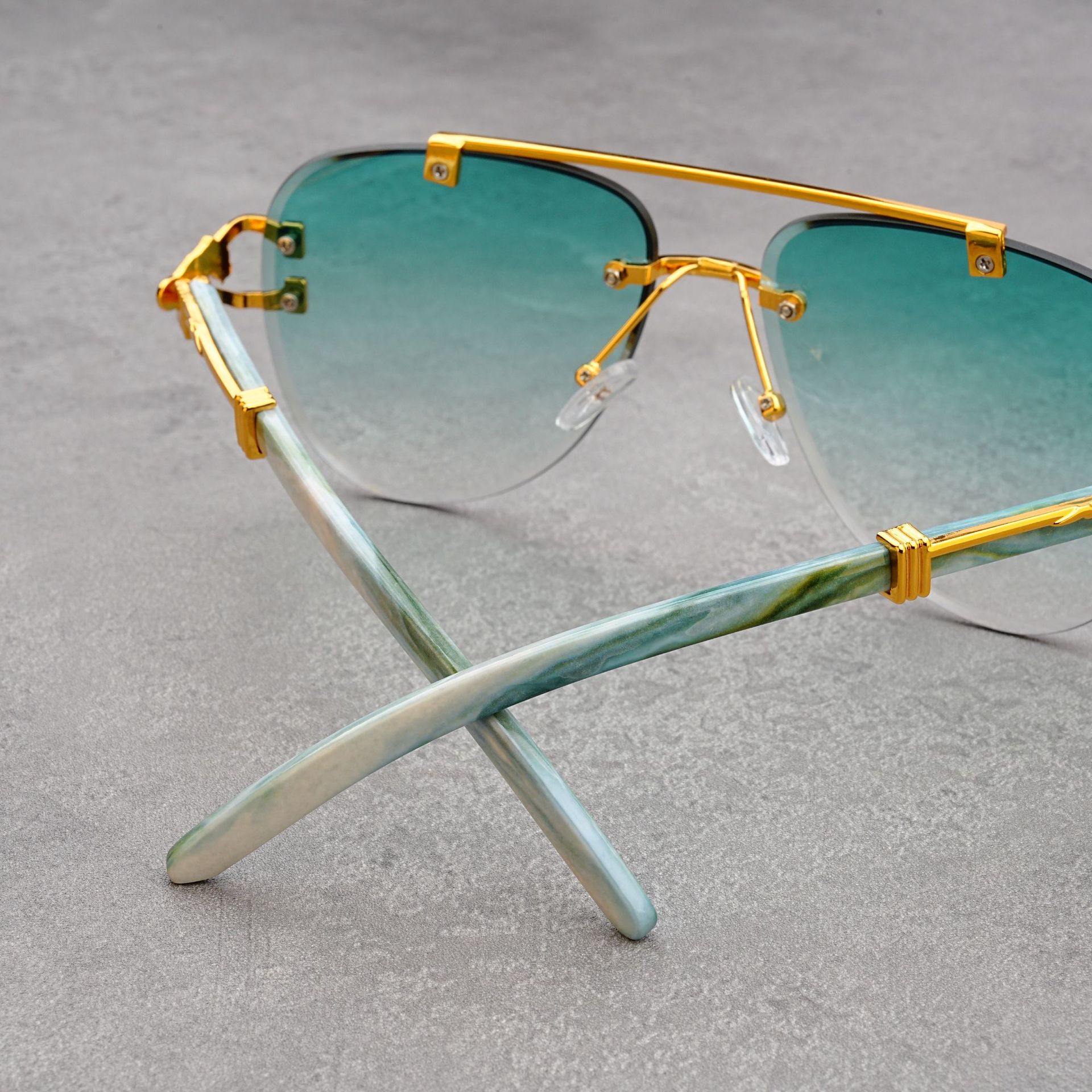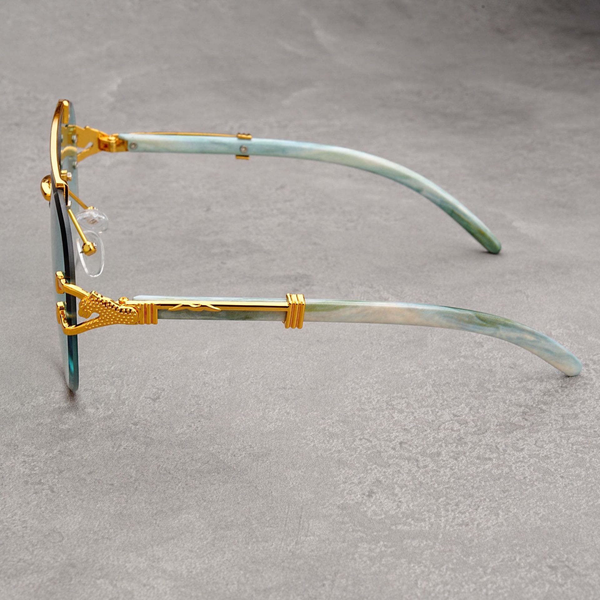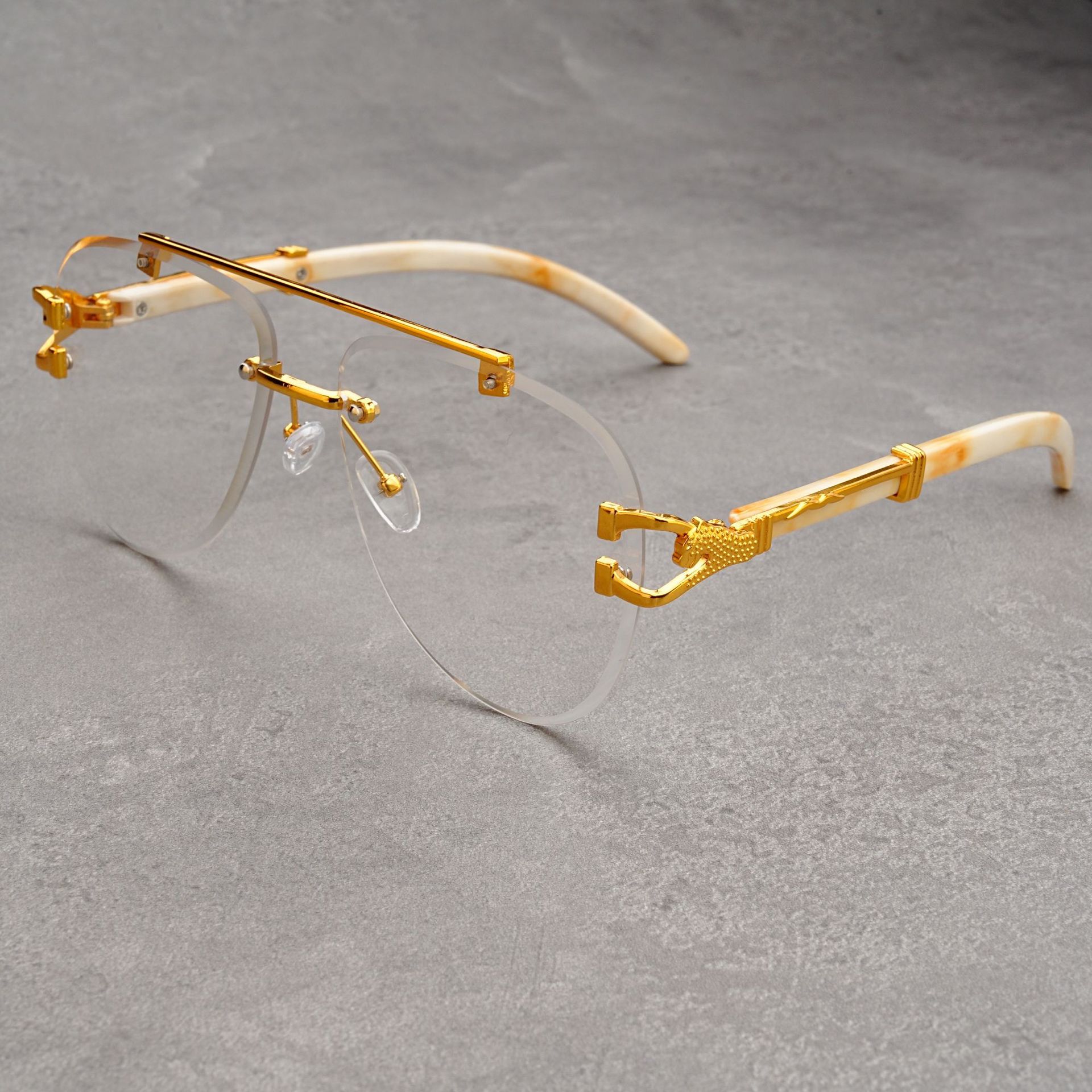 유럽과 미국의 복고풍 치타 나뭇결 다리 더블 빔 선글라스 세련된 무테 컷 엣지 오션 피스 두꺼비 거울 선글라스 트렌디