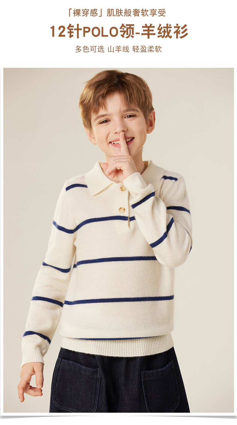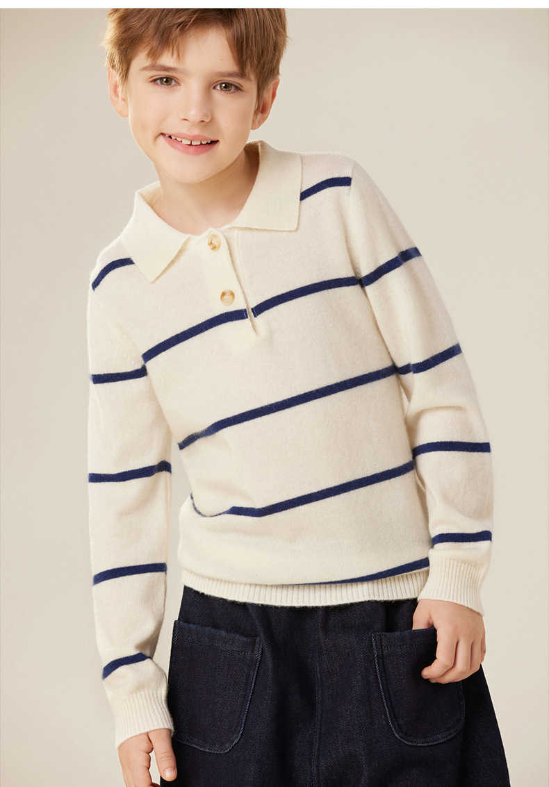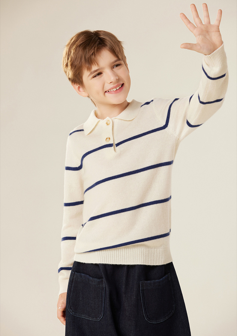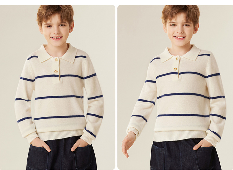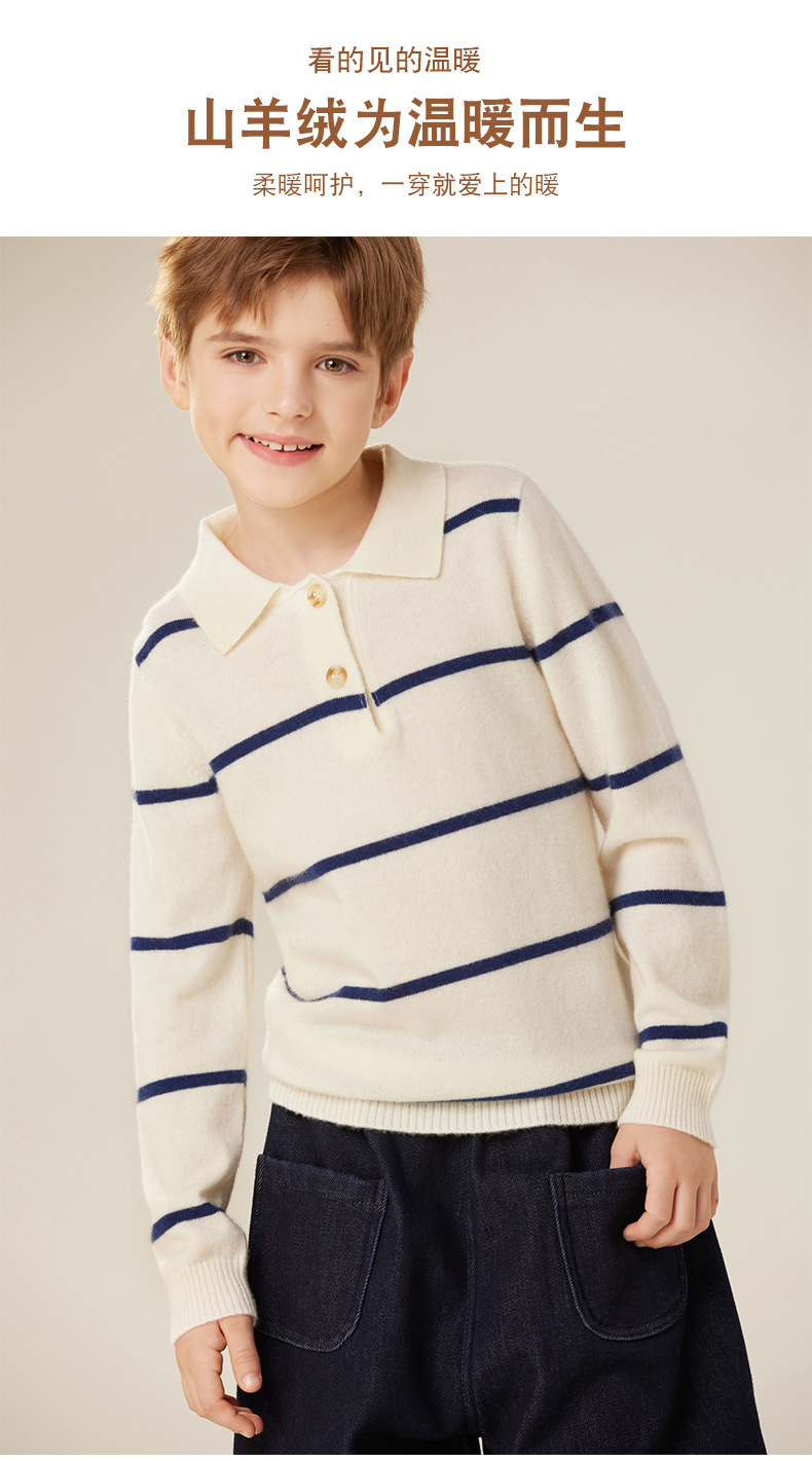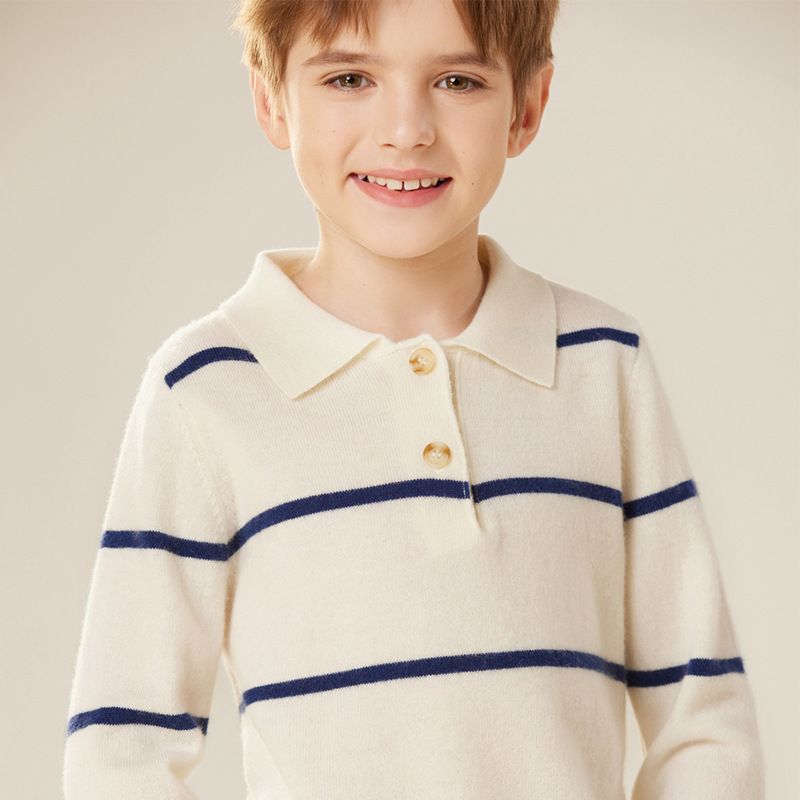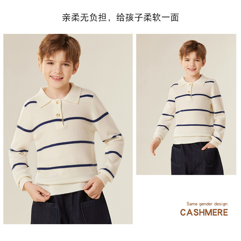 가을과 겨울 새로운 소년 아기 산 캐시미어 스웨터 POLO 작은 옷깃 대조 색상 줄무늬 니트 따뜻한 풀오버 스웨터