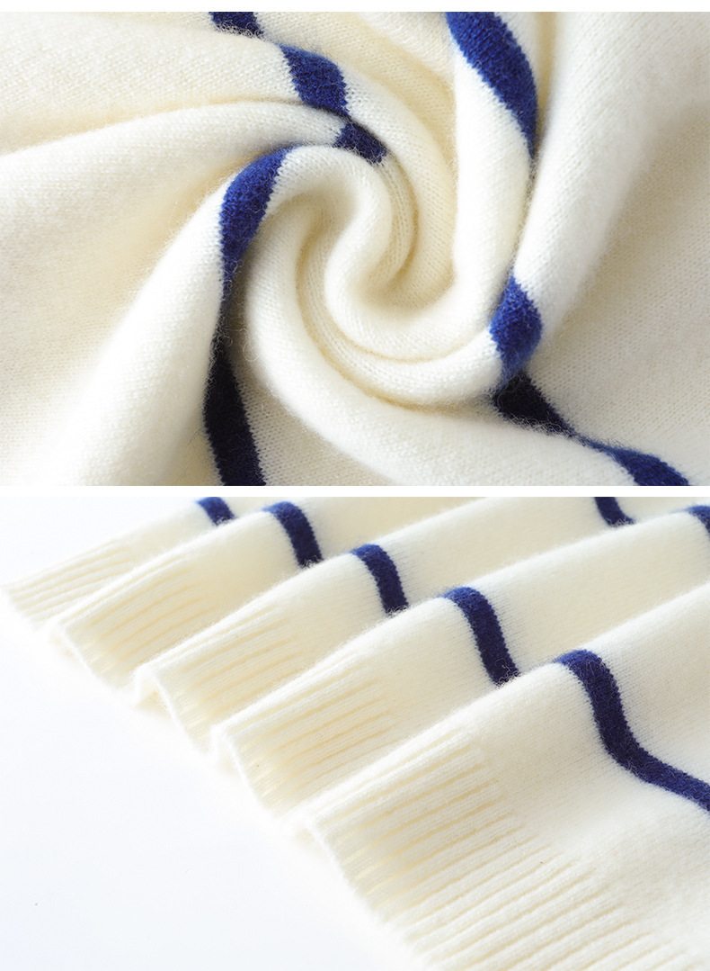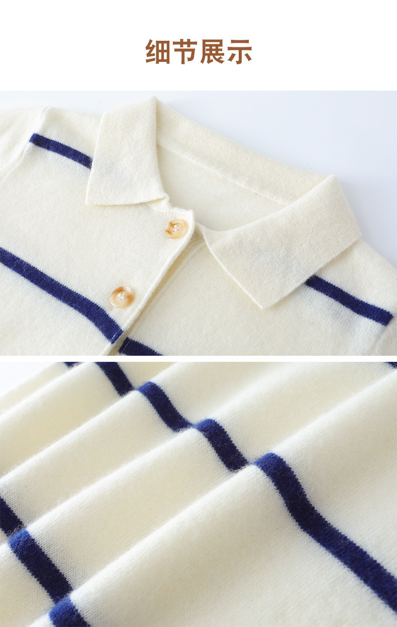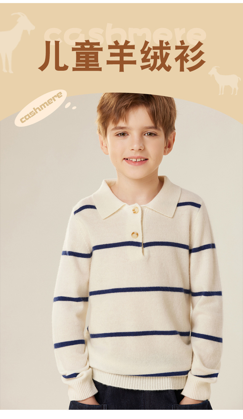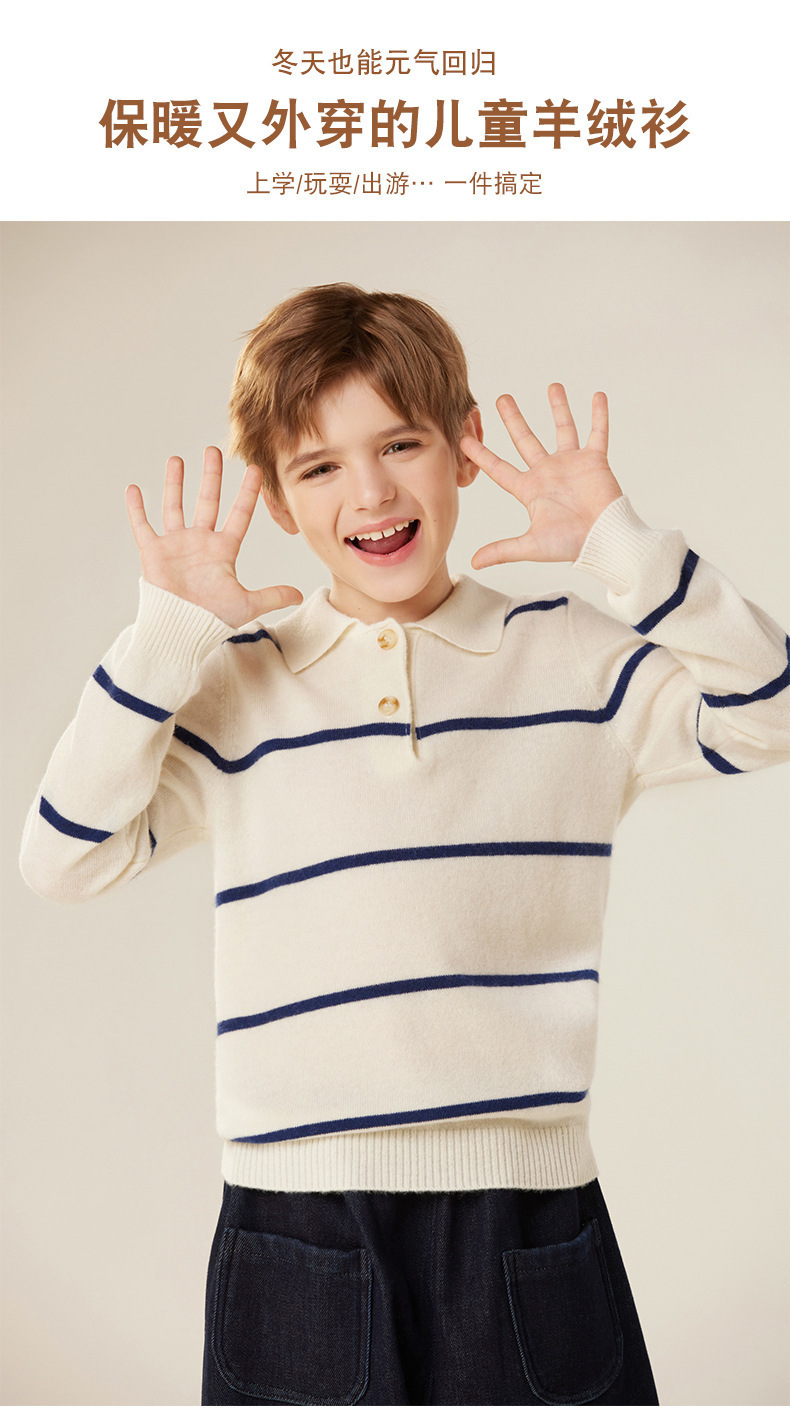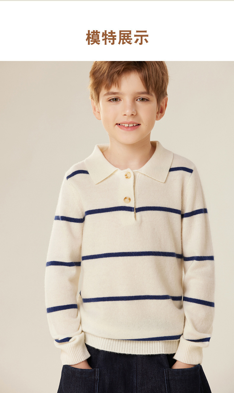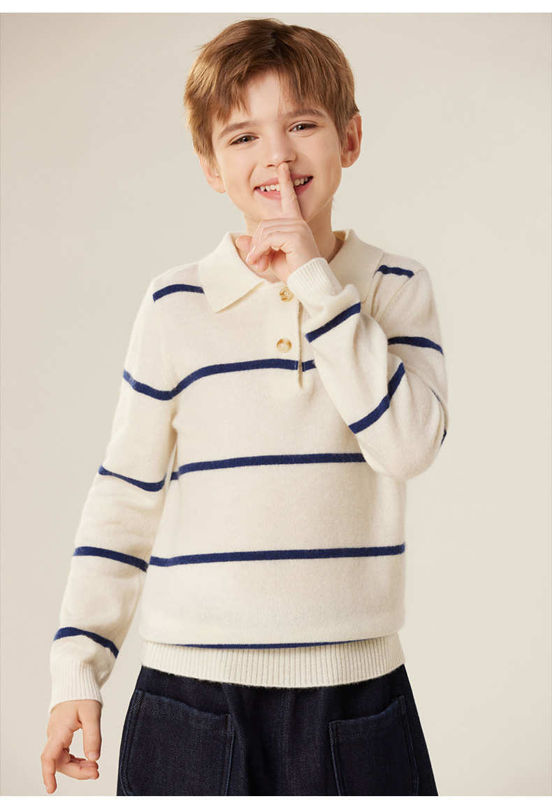 가을과 겨울 새로운 소년 아기 산 캐시미어 스웨터 POLO 작은 옷깃 대조 색상 줄무늬 니트 따뜻한 풀오버 스웨터