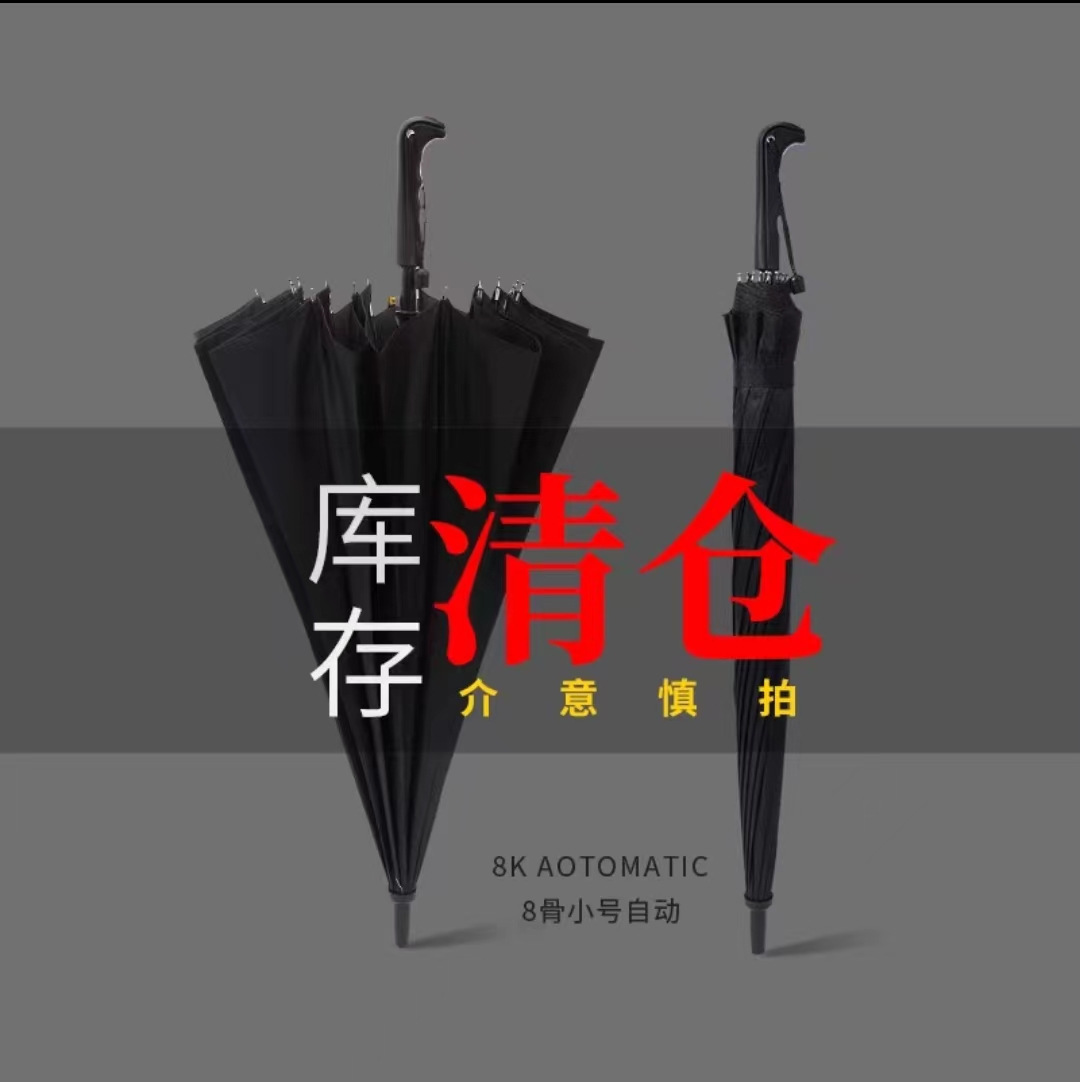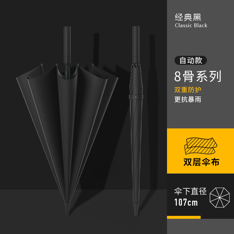 • [전체 섬유 중간 막대 + 방풍 섬유 뼈] [자동] 8 갈비 클래식 블랙 - 두꺼운 우산 천 - 무료 우산 커버