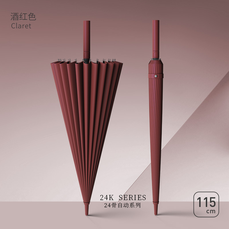 • [풀 파이버 미디엄 로드 + 방풍 섬유 뼈]⭐방수 커버 24리브 대형 버건디 - 폭풍우 방지 우산