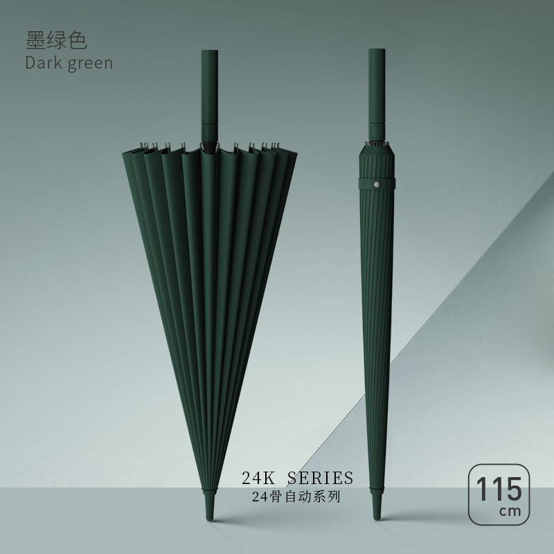 • [풀 파이버 미디엄 로드 + 방풍 섬유 뼈]⭐방수 케이스 24리브 확대 짙은 녹색 - 폭풍우 방지 우산
