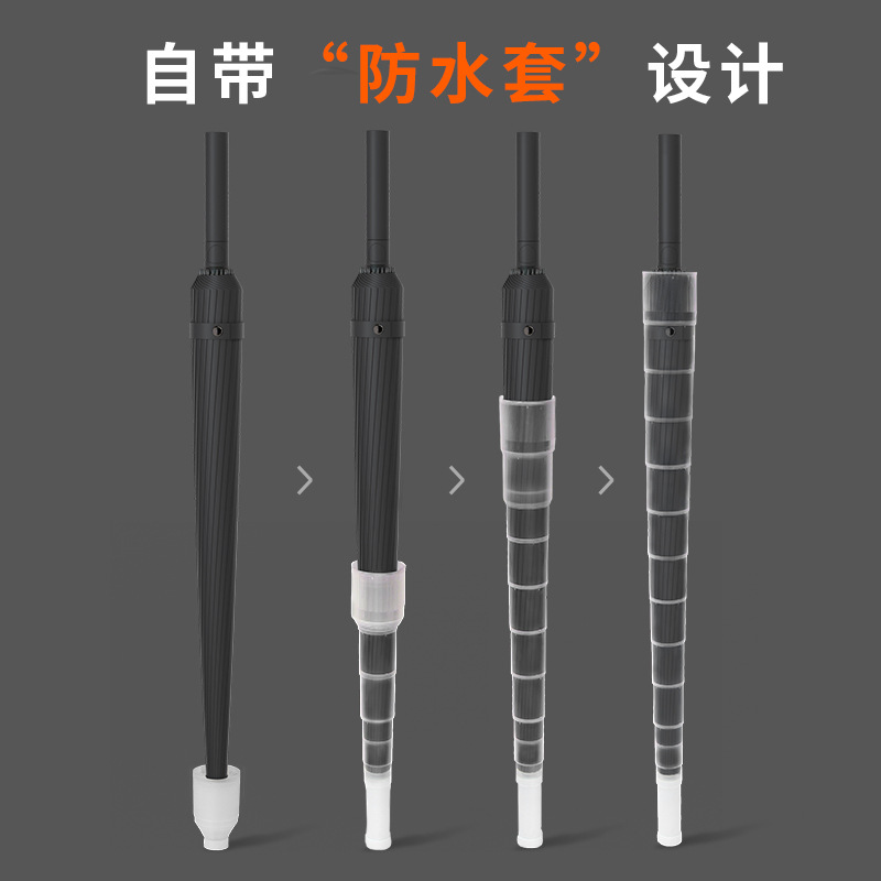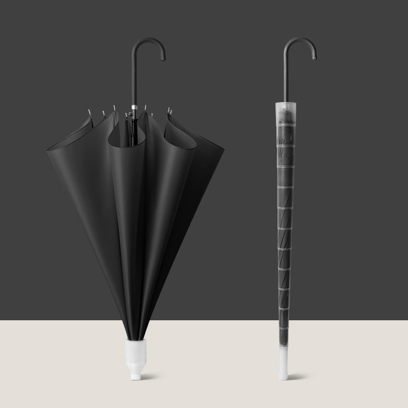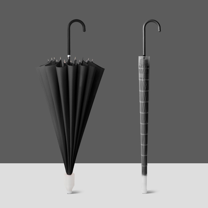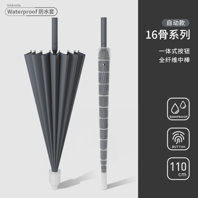 • [전체 섬유 중간 막대 + 방풍 섬유 뼈] [자동] 16 갈비 클래식 블랙 - 두꺼운 우산 천 - 무료 우산 커버