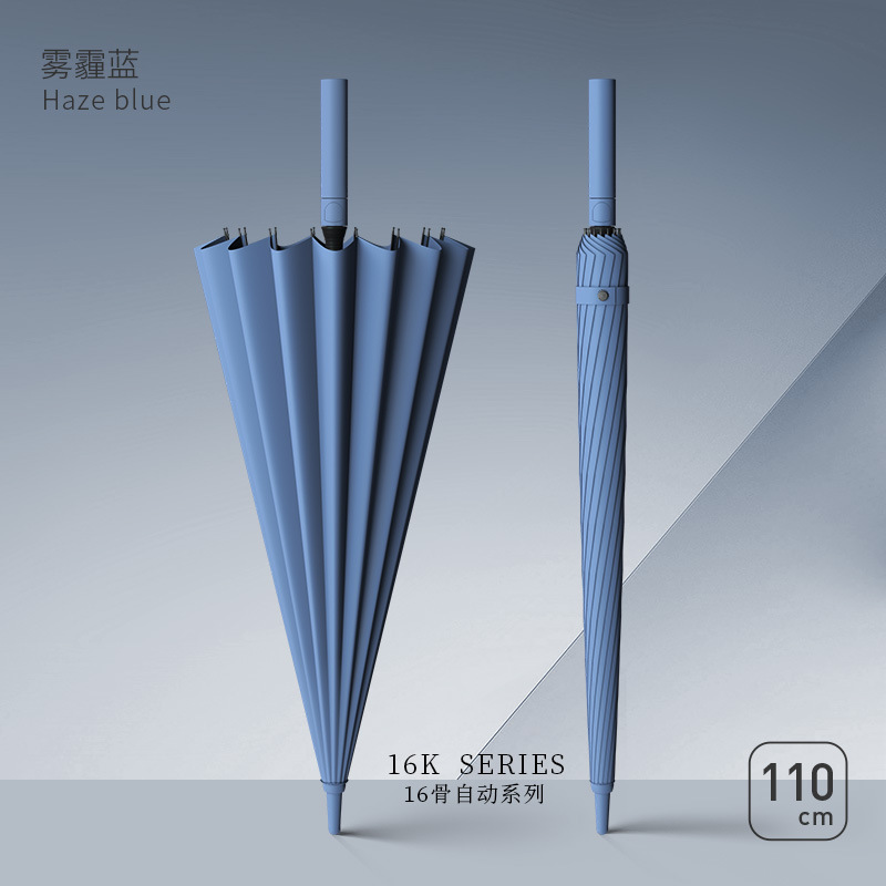 • [전체 섬유 중간 막대 + 방풍 섬유 뼈] [자동] 16 뼈 헤이즈 블루 - 두꺼운 우산 천 - 무료 우산 커버