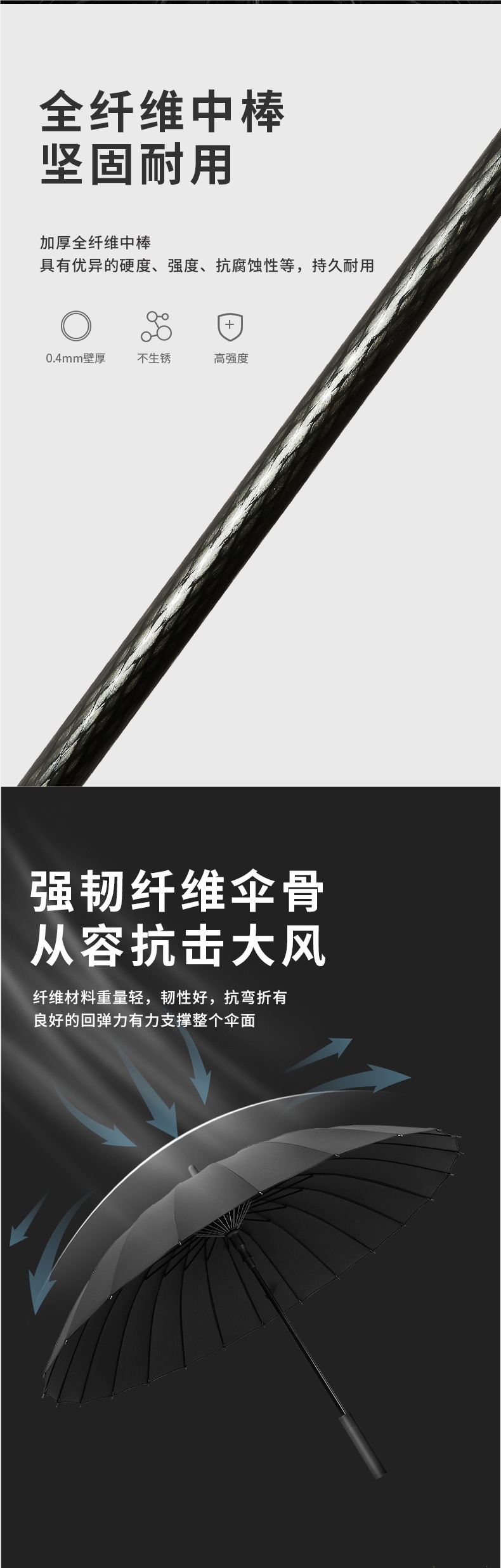 • [풀파이버 미디엄로드 + 방풍섬유골] [자동] 16본 스페이스 그레이 - 두꺼운 우산천 - 무료 우산커버
