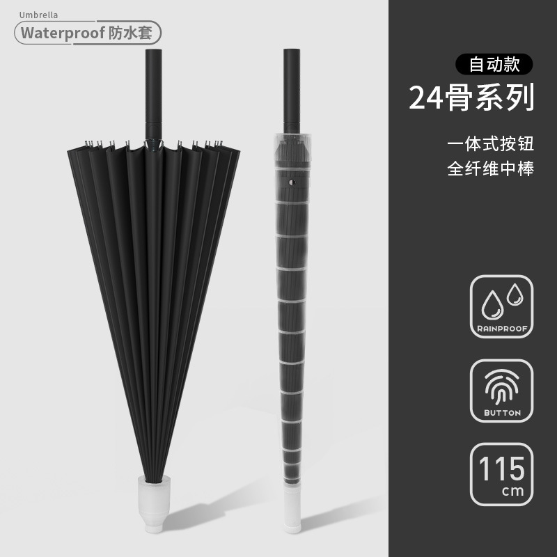 • [풀 파이버 미디엄 로드 + 방풍 섬유 뼈] [자동] 24본 확대 클래식 블랙 - 무료 우산 커버